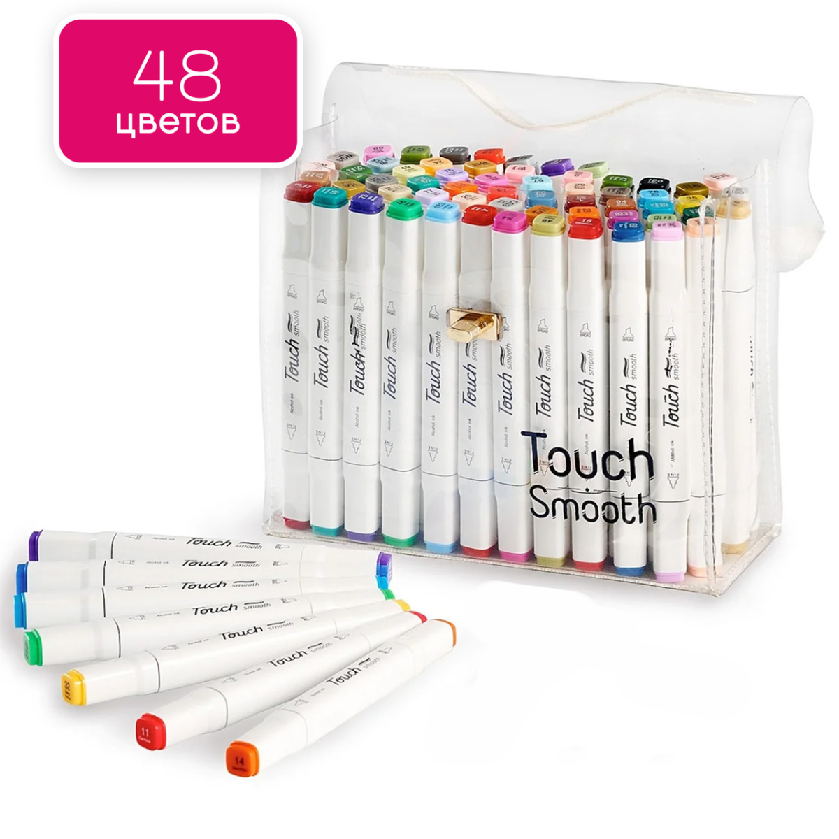 Набір двосторонніх спиртових маркерів для малювання Touch Smooth 48 штук, набір маркерів для скетчингу