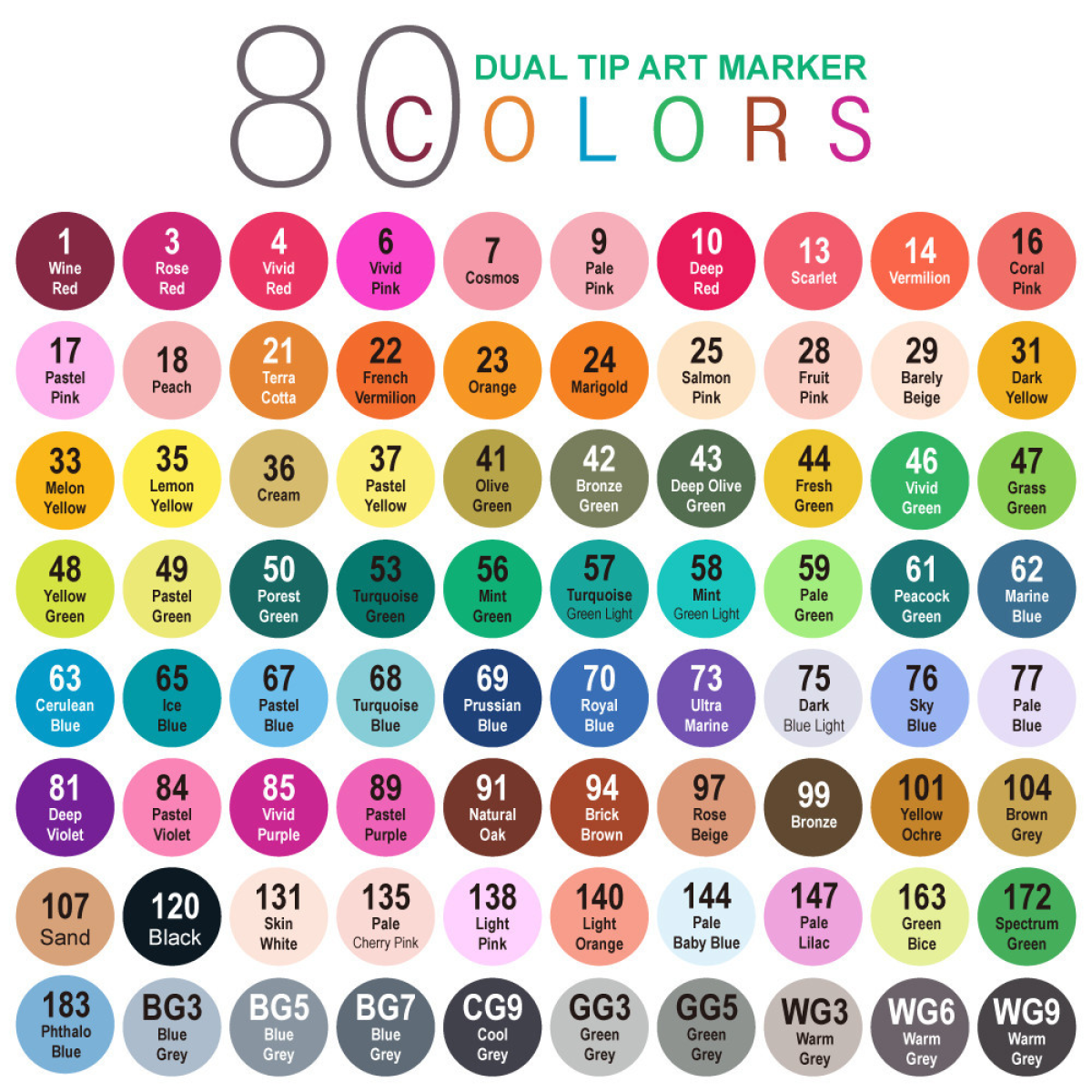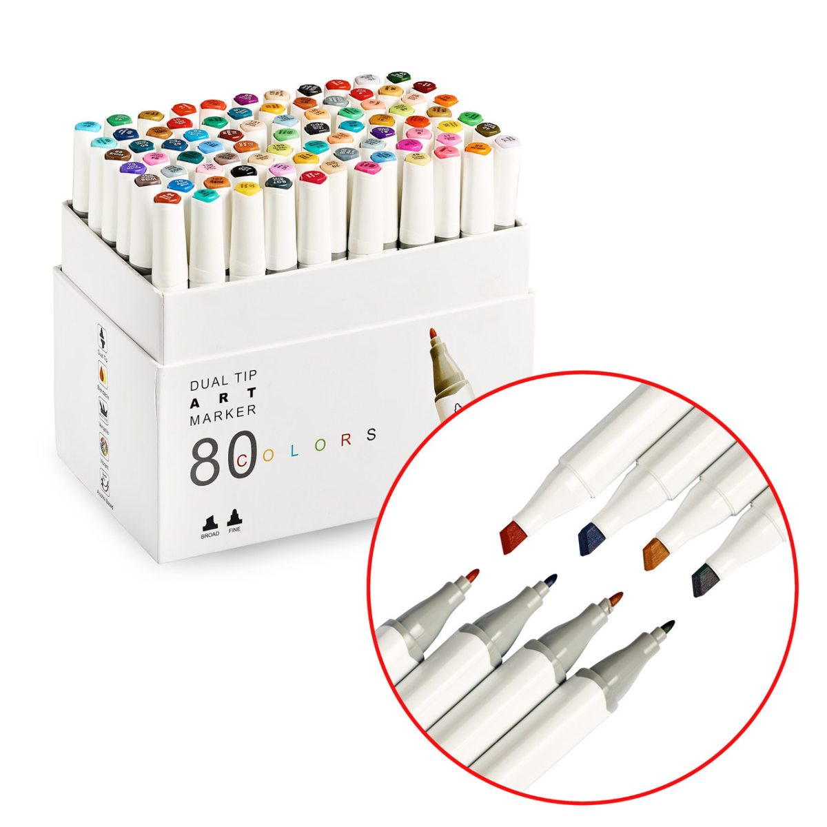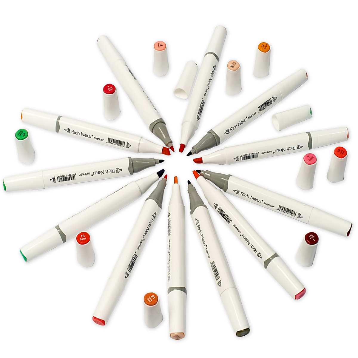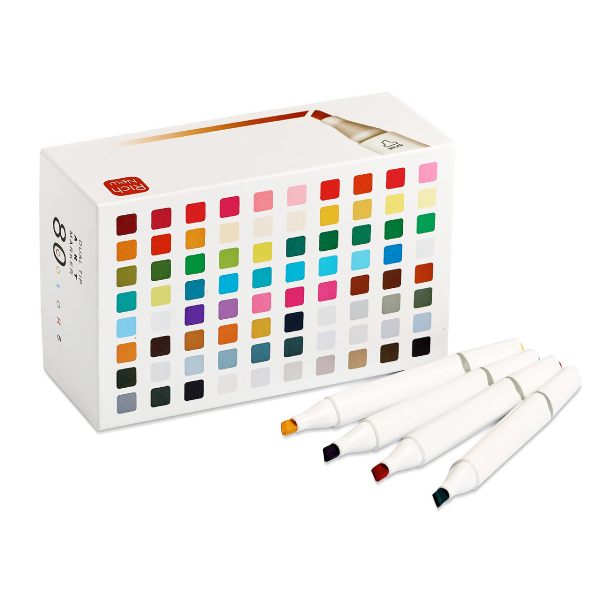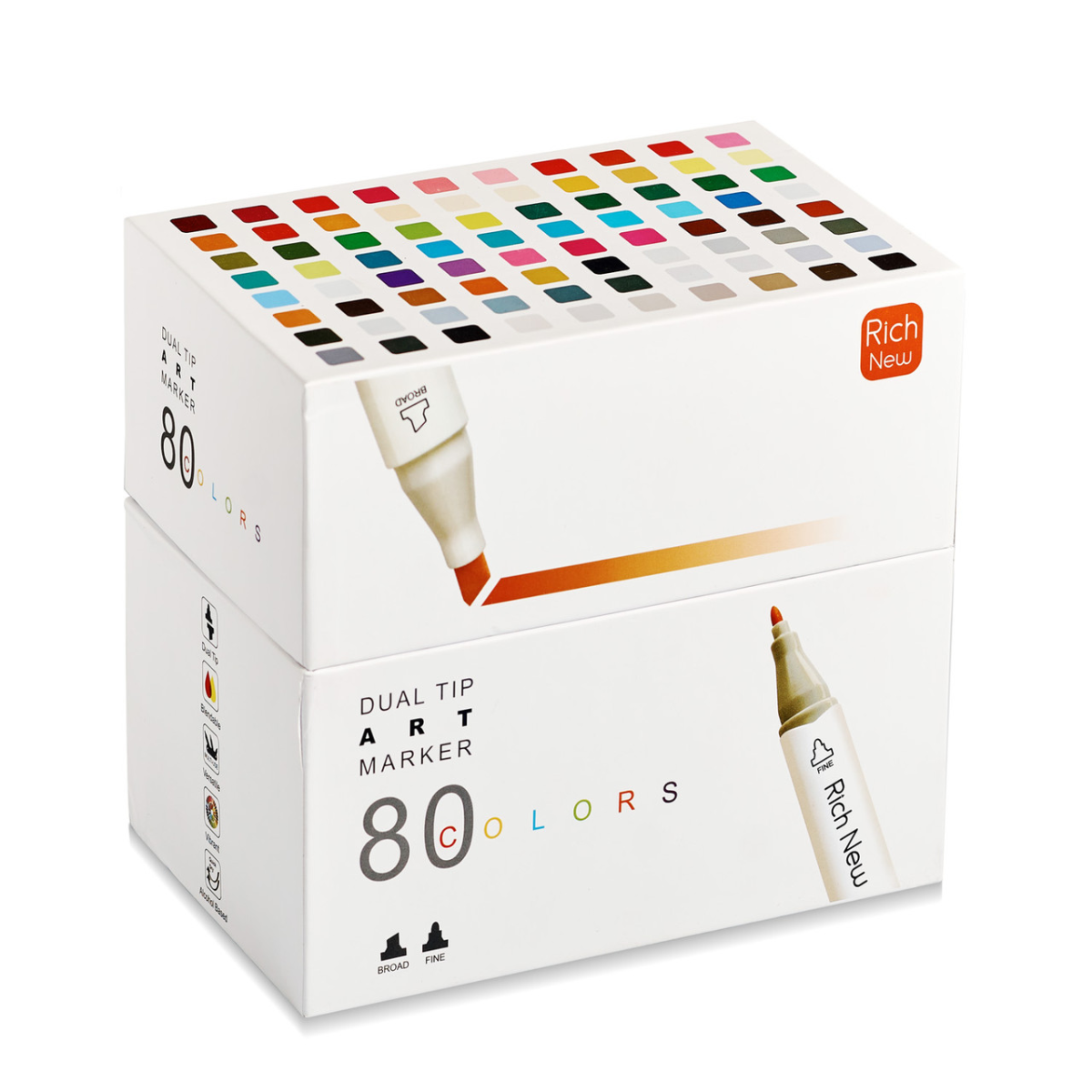 Двосторонні маркери для скетчинга і малювання на спиртовій основі 80 штук Rich New, Фломастери для художників