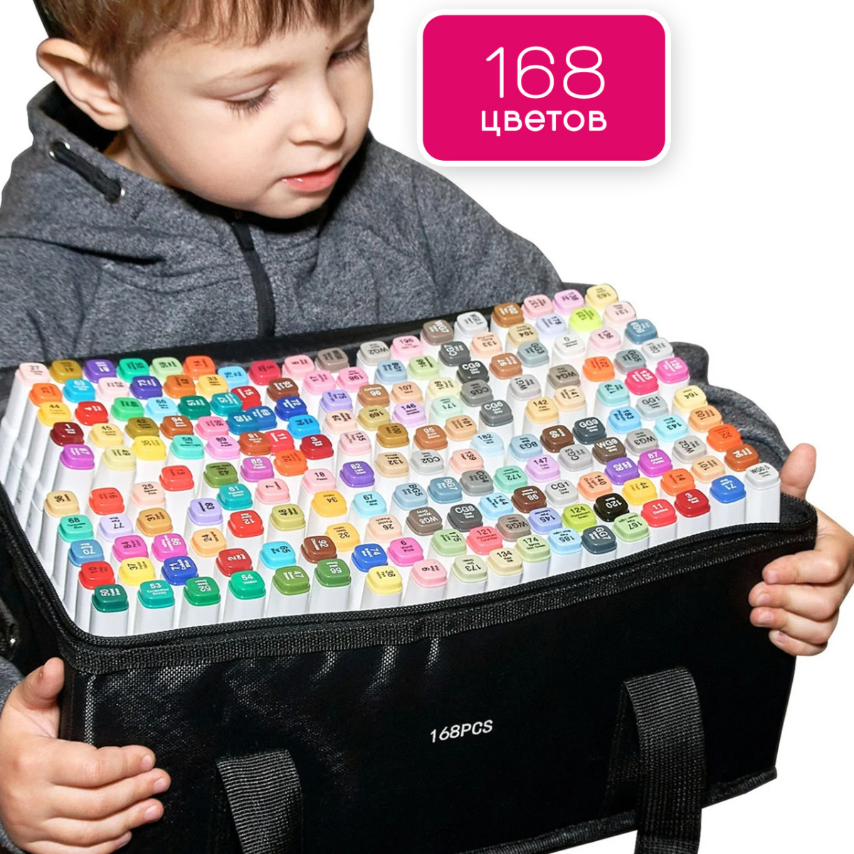 Двосторонні маркери 168 штук для скетчинга і малювання на спиртовій основі, Маркери, фломастери Touch