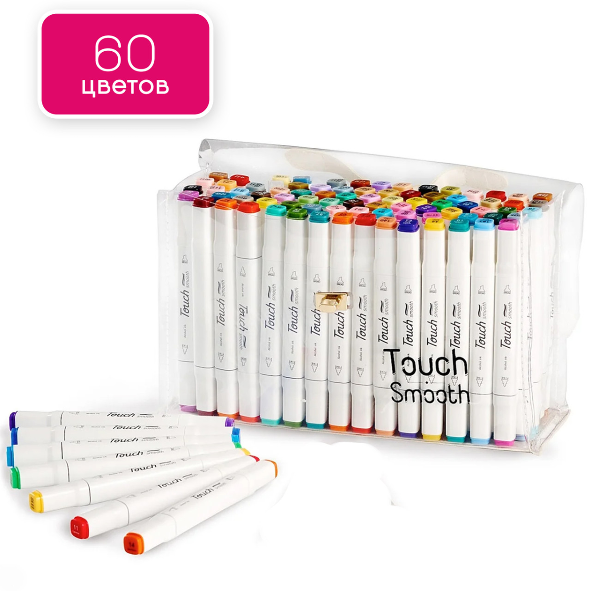 Набір якісних двосторонніх маркерів 60 штук Touch Smooth для малювання і скетчинга на спиртовій основі