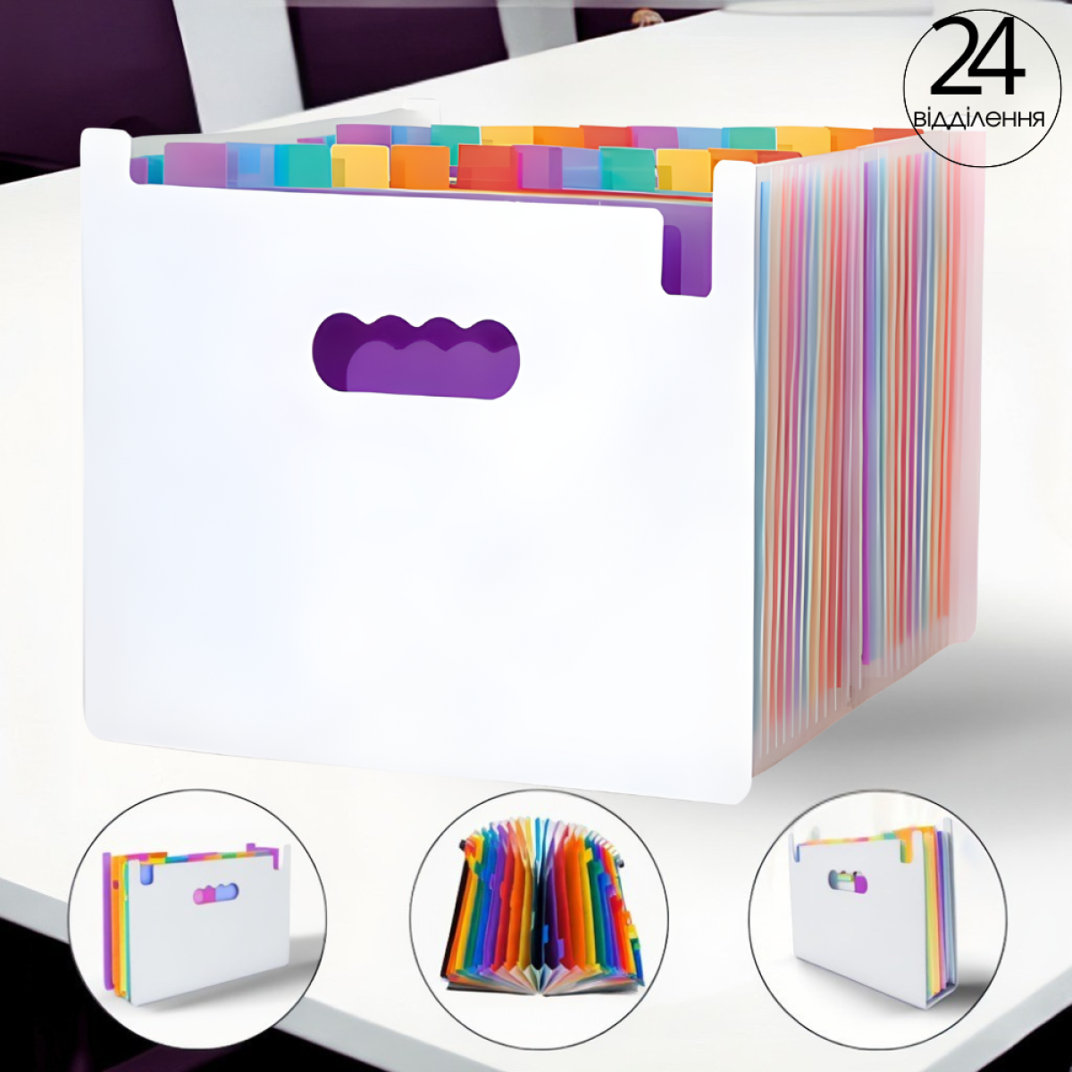 Папка-органайзер для зберігання документів і файлів формат А4 на 24 відділення,, з кольоровими вкладками, чорна 330x240x30 мм