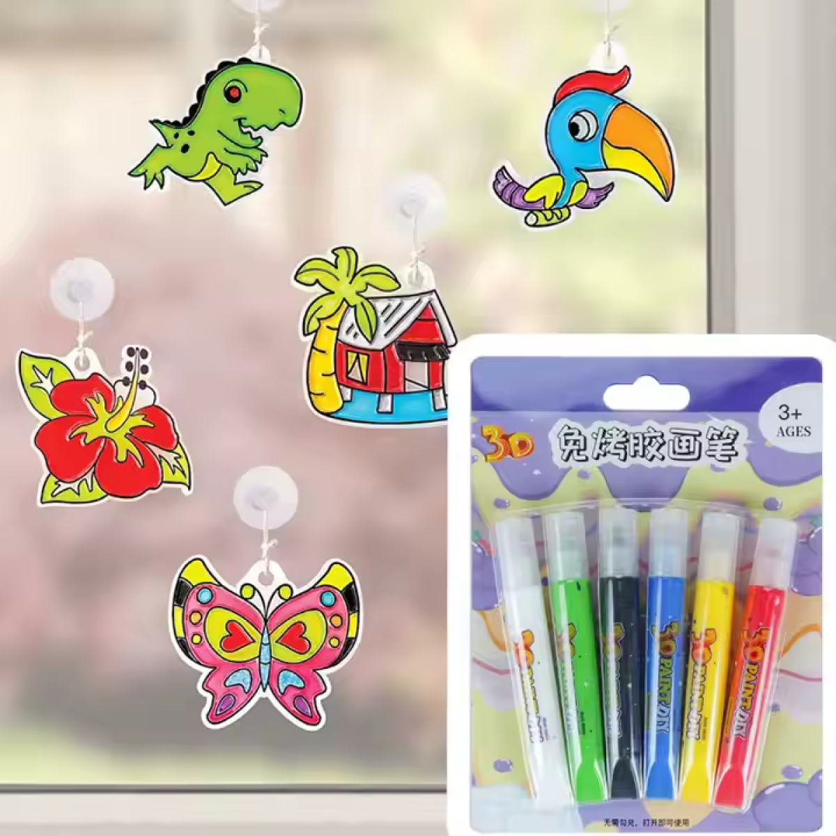 Набір вітражних фарб і 3D-маркерів, комплект для дизайну та рукоділля, 6 кольорів