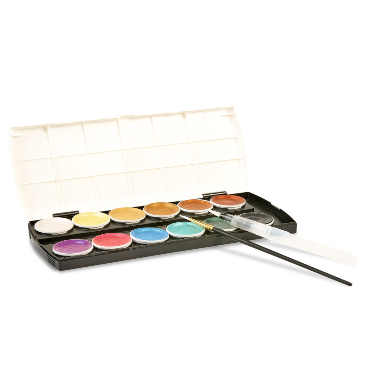 Фарби акварельні з перламутром (металік) для малювання 12 кольорів, перламутрові фарби, що переливаються