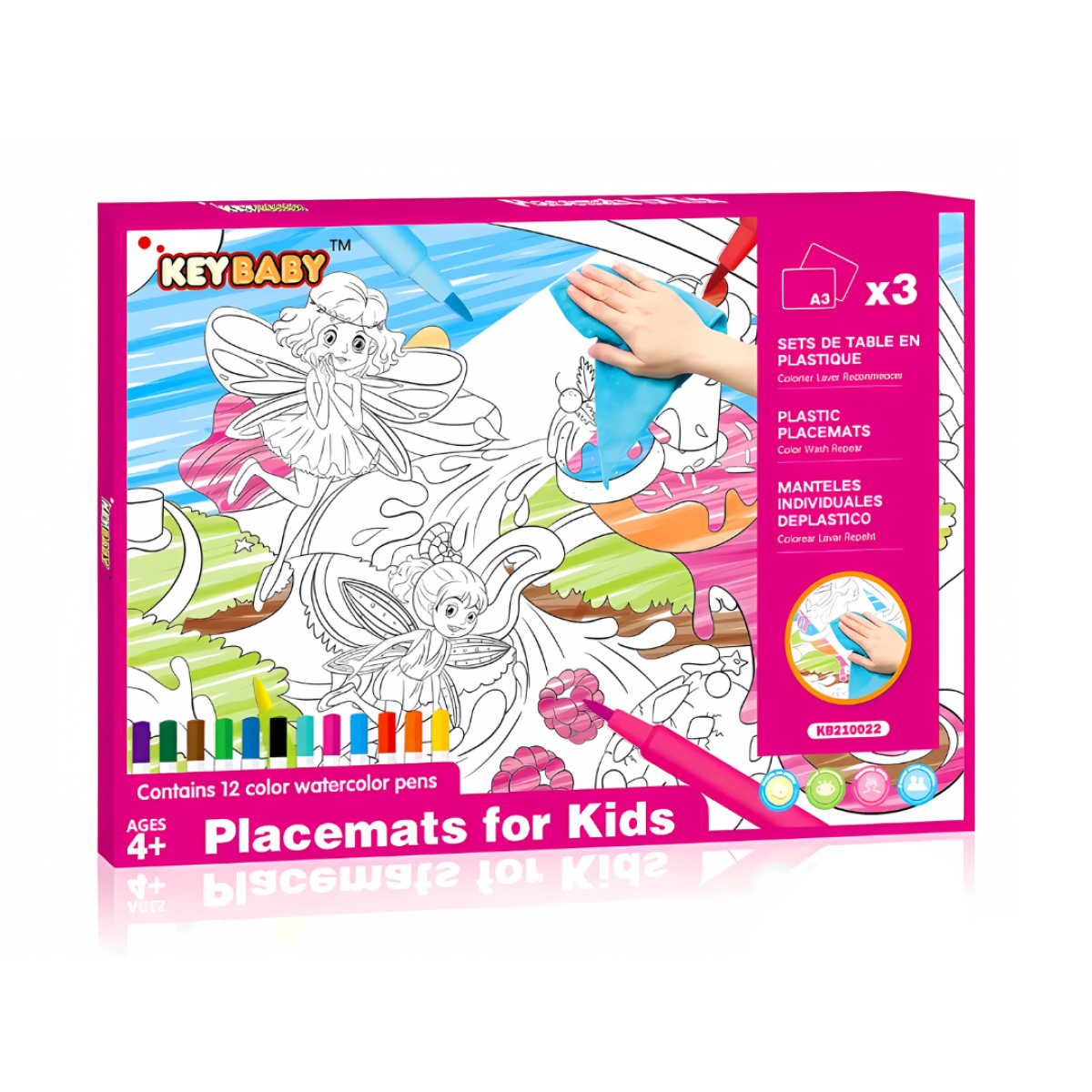 Набір для малювання, дитячі розмальовки Keybaby, 3шт формат А3 з 12 маркерами та серветкою для очищення, Pink