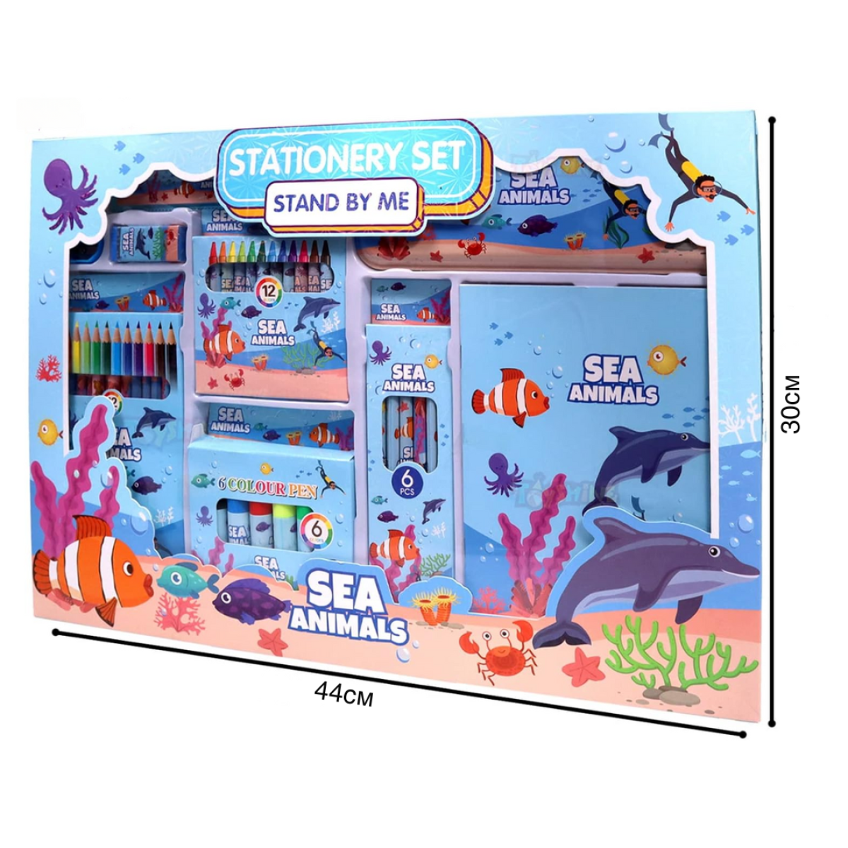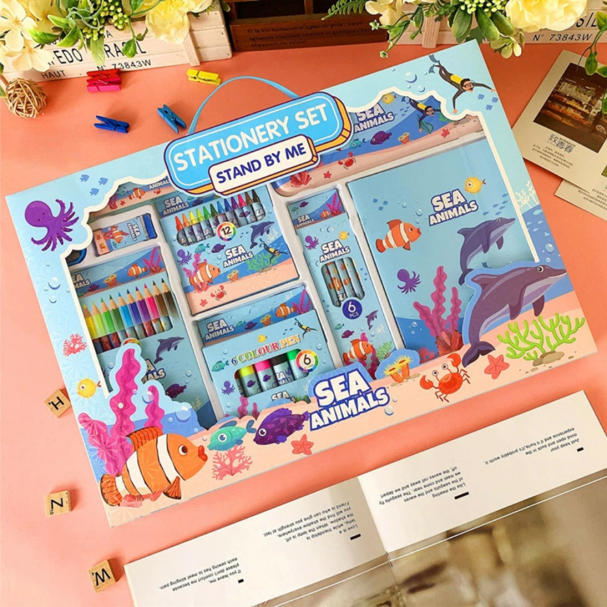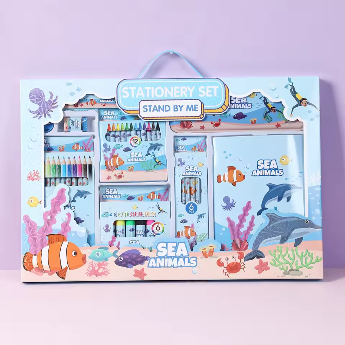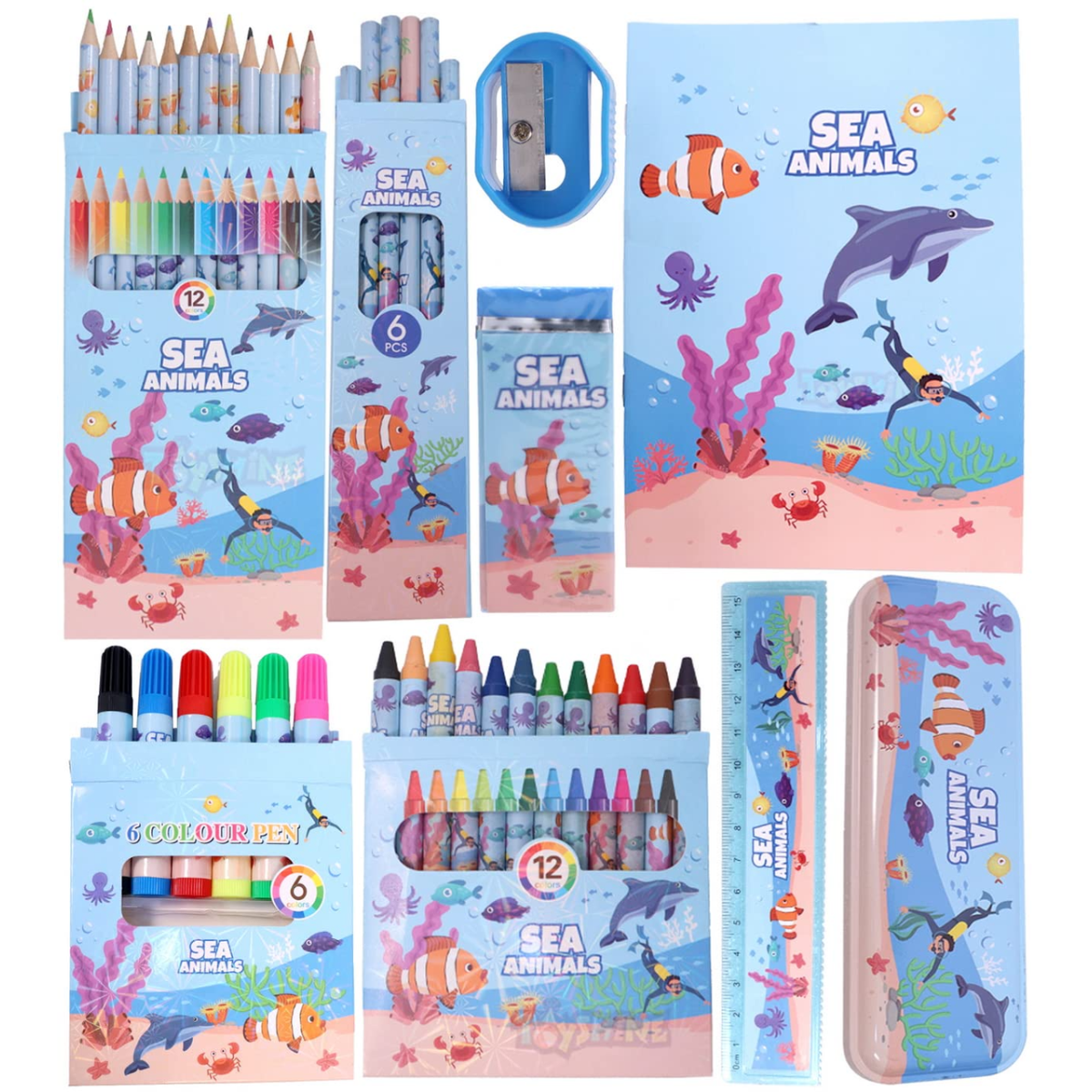 Творчий набір для малювання з пеналом, олівцями та маркерами, стиль Морська тематика, для дітей