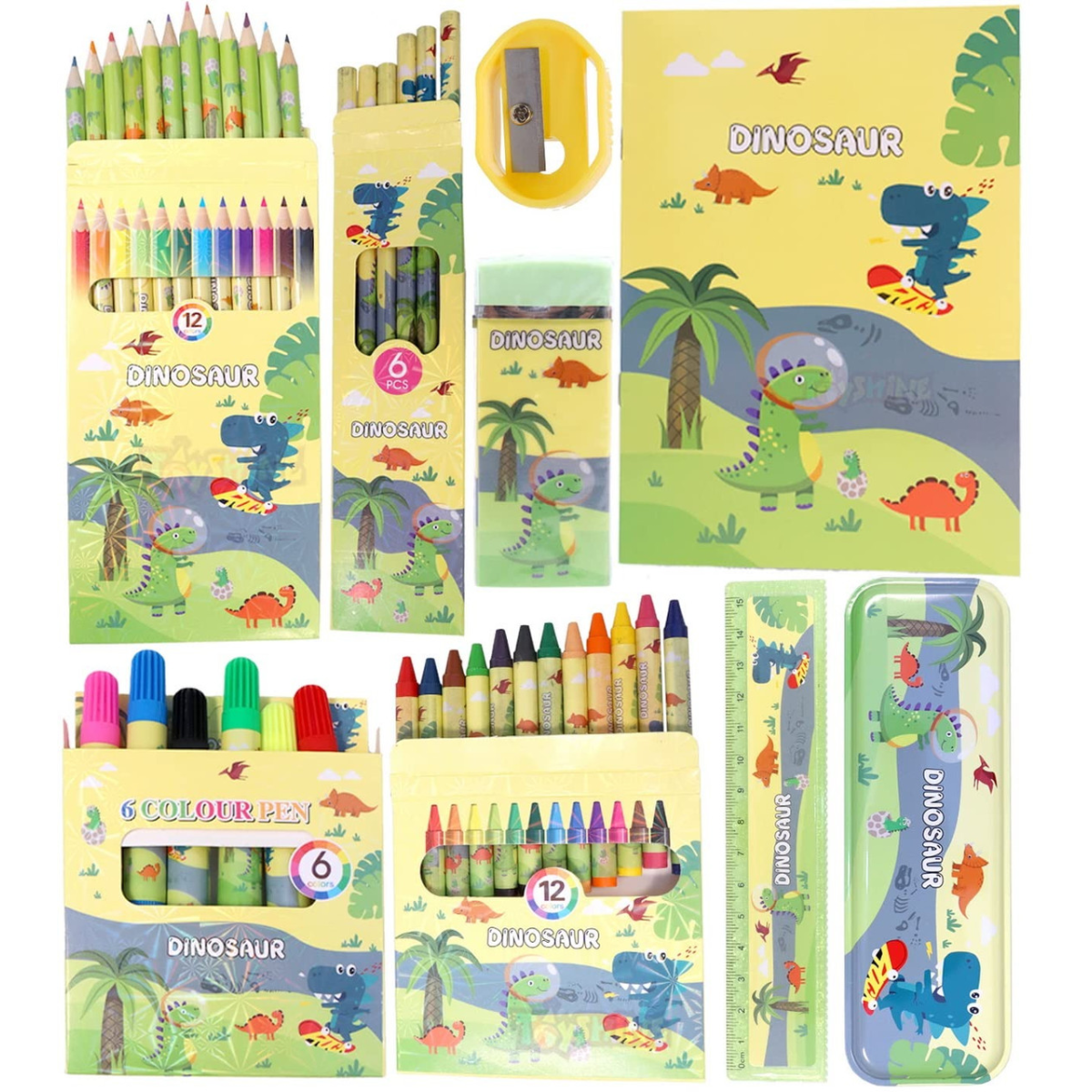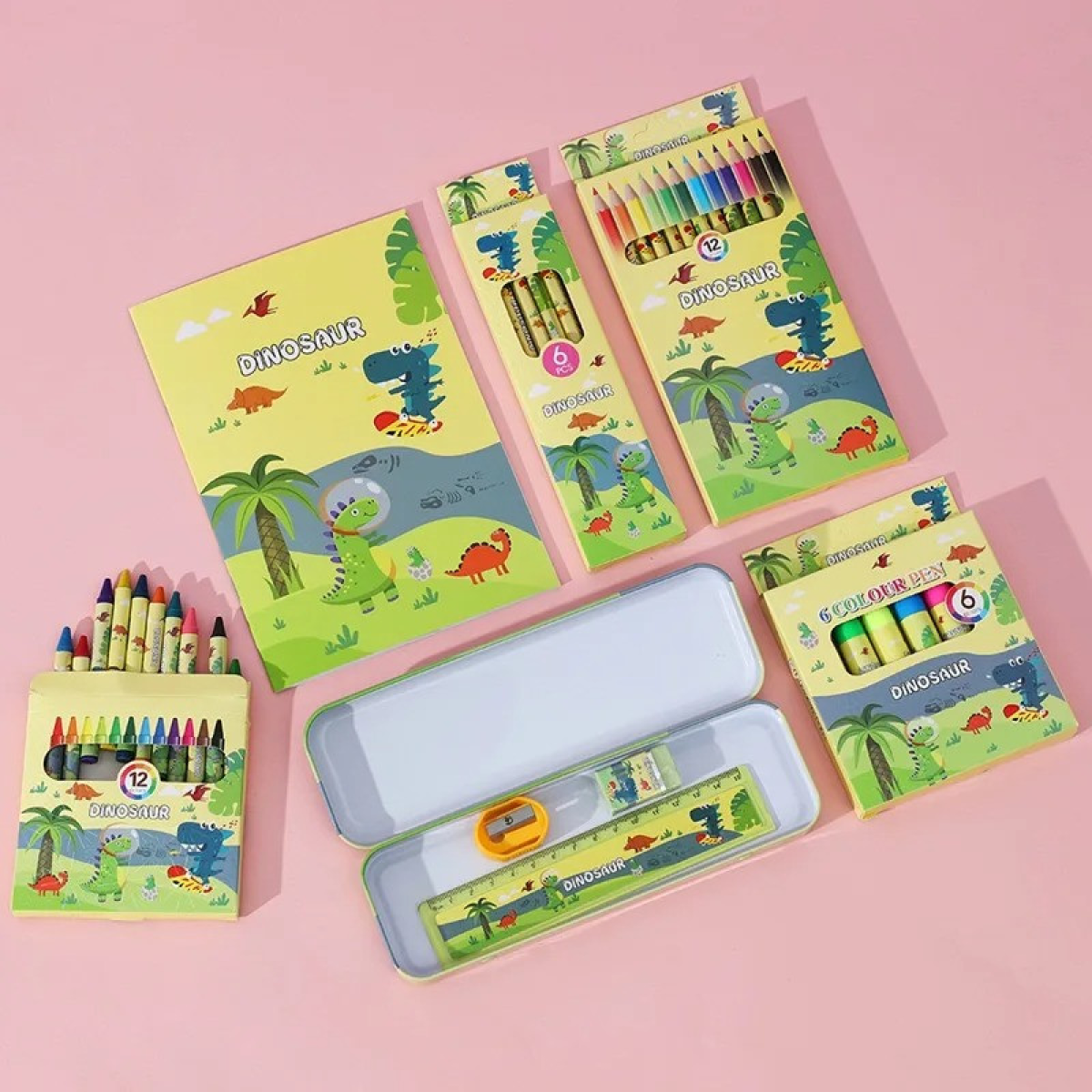 Набір для творчості та малювання, “Динозаври“ подарунковий набір канцелярії для дітей пенал, олівці, маркери