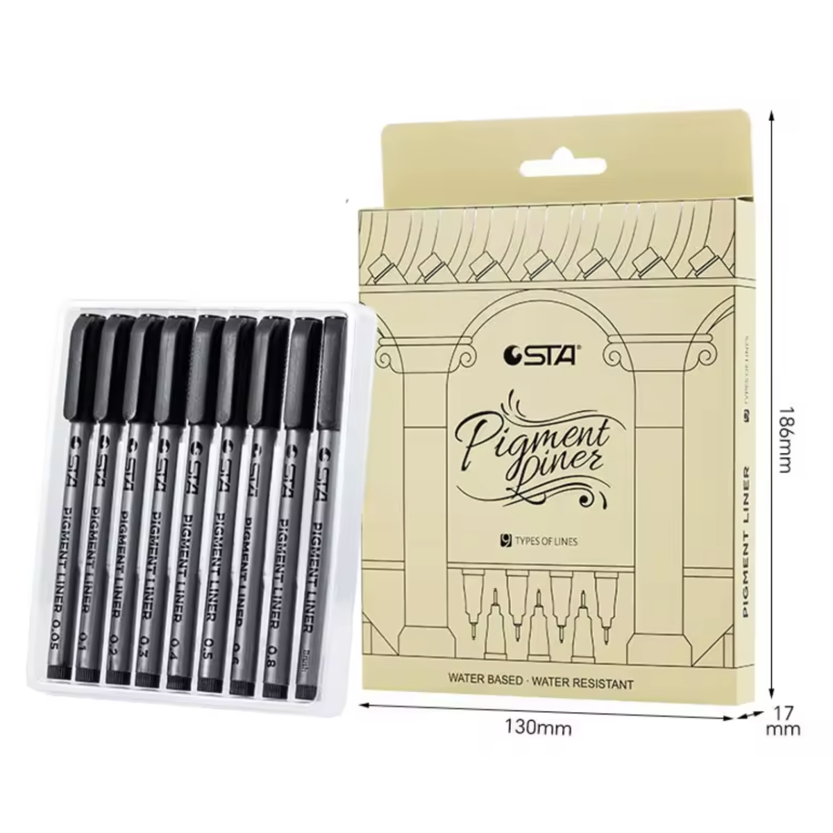 Для тих, хто цінує точність і впевненість у кожній лінії, представляємо дивовижний набір лайнерів із 9 різними діаметрами! Цей набір ідеально підходить для художників, малювання тонких деталей, рукопису, ілюстрацій, журналінгу та багато чого іншого. Основні характеристики: *Різноманітність діаметрів У наборі міститься 9 лайнерів з різними товщинами (0,05; 0,1; 0,2; 0,3; 0,4; 0,5; 0,8; 1; BR.) * Висока якість матеріалів: Кожен лайнер виготовлений з якісних матеріалів, що забезпечує міцність і довговічність інструментів. *Зручність використання: Ергономічний дизайн лайнерів забезпечує комфортне і точне утримання, даючи змогу створювати чіткі й акуратні лінії без зусиль. *Різнобічне застосування: Цей набір ідеально підходить для використання в різних творчих завданнях, як-от малювання, скетчинг, замальовування, технічні креслення, а також у письменстві, підписі та декоруванні. Відкрийте для себе нескінченні можливості з цим різноманітним набором лайнерів і підкресліть унікальність своєї творчості!