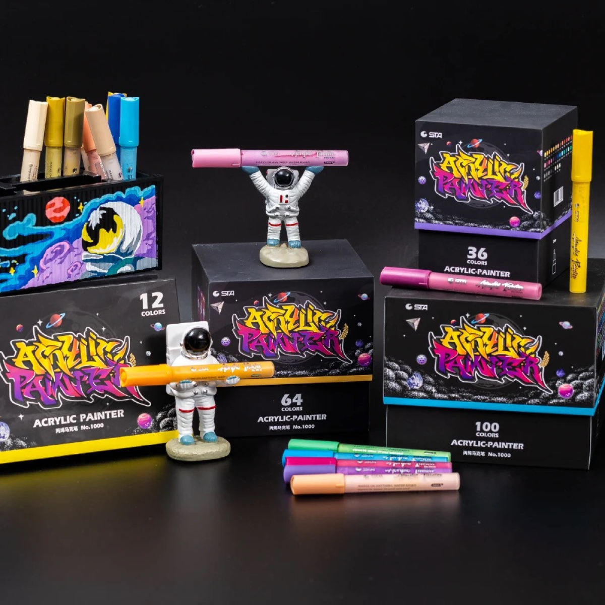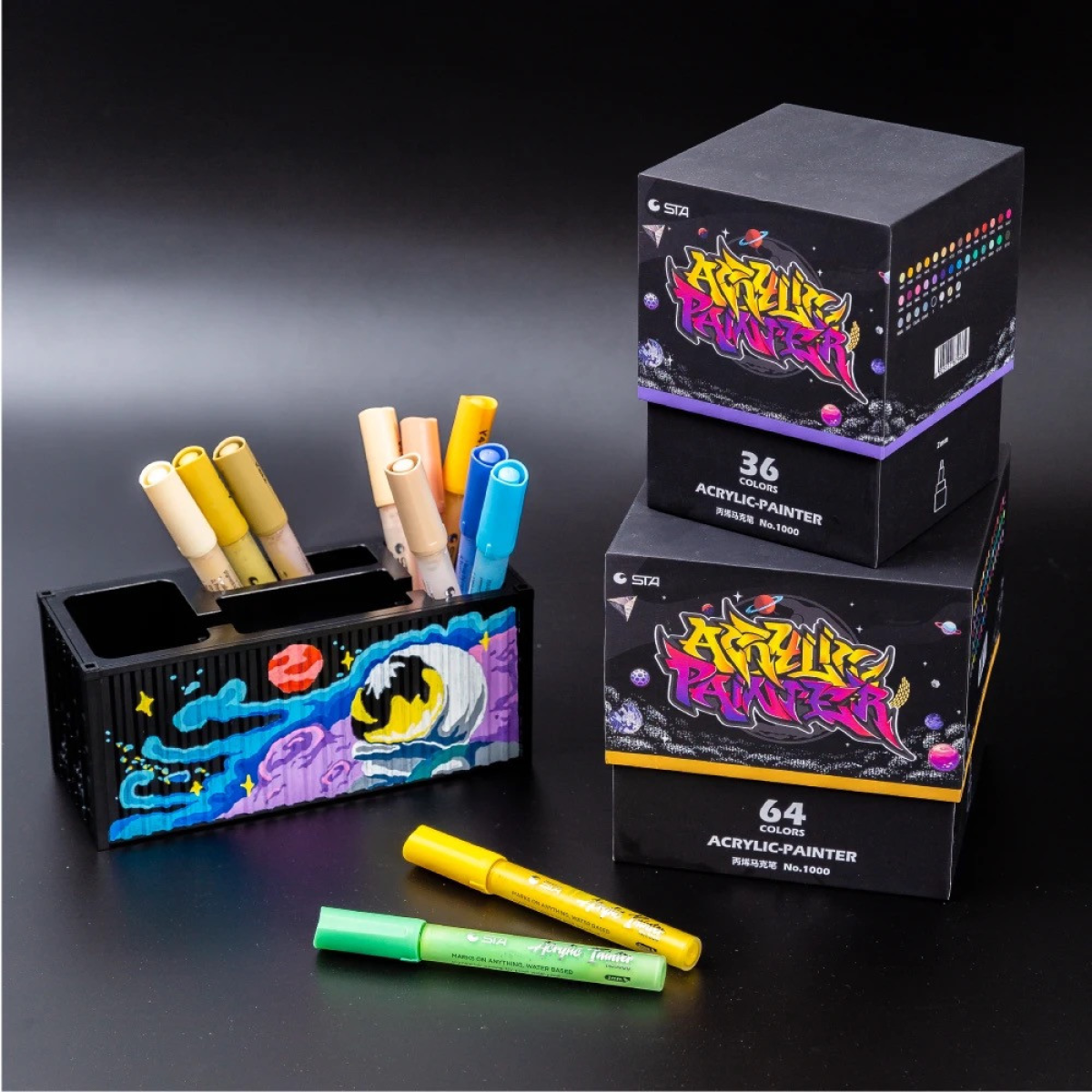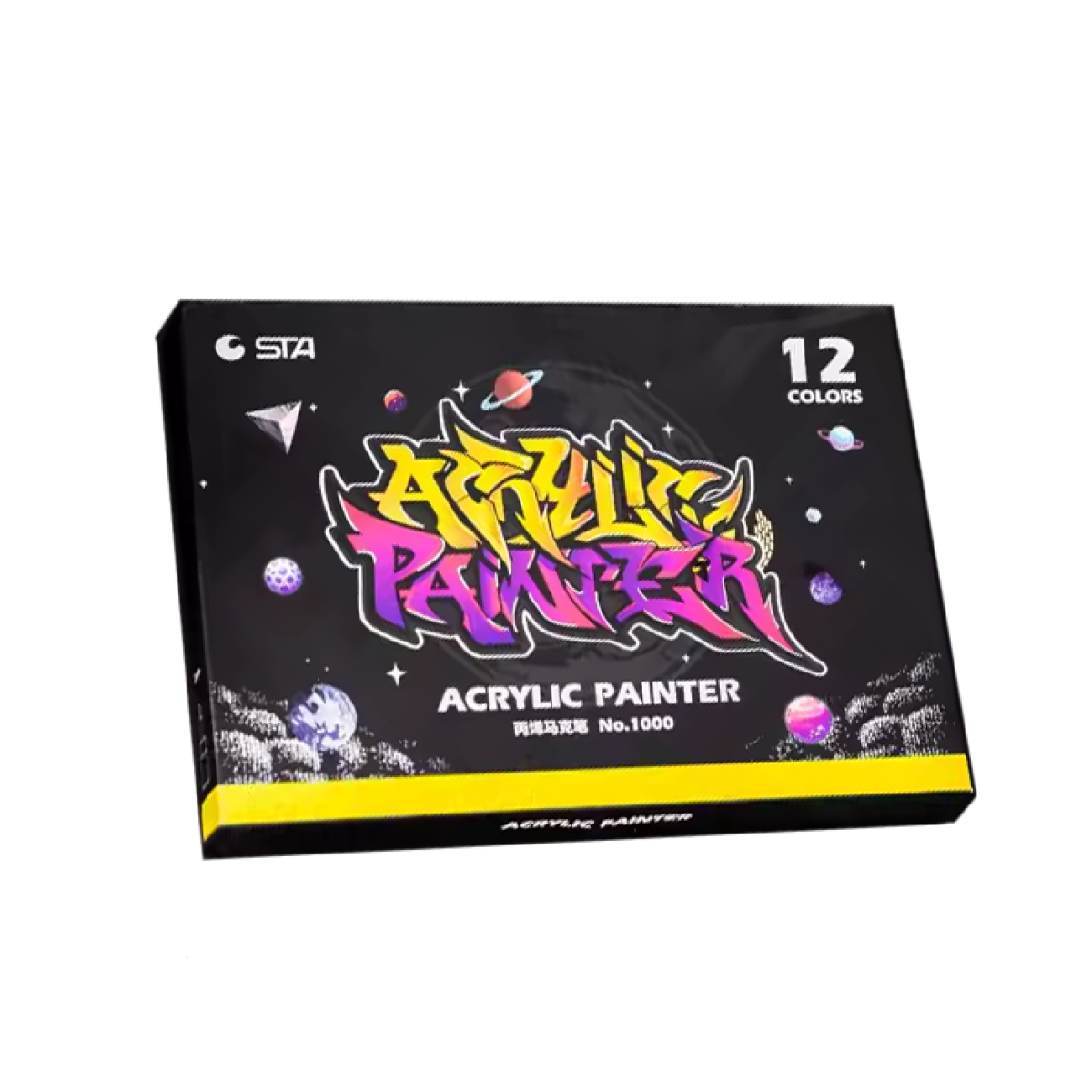 Маркери акрилові STA для малювання, преміум якість, набір 12 кольорів, універсальні для скла, дерева, ткани та кераміки