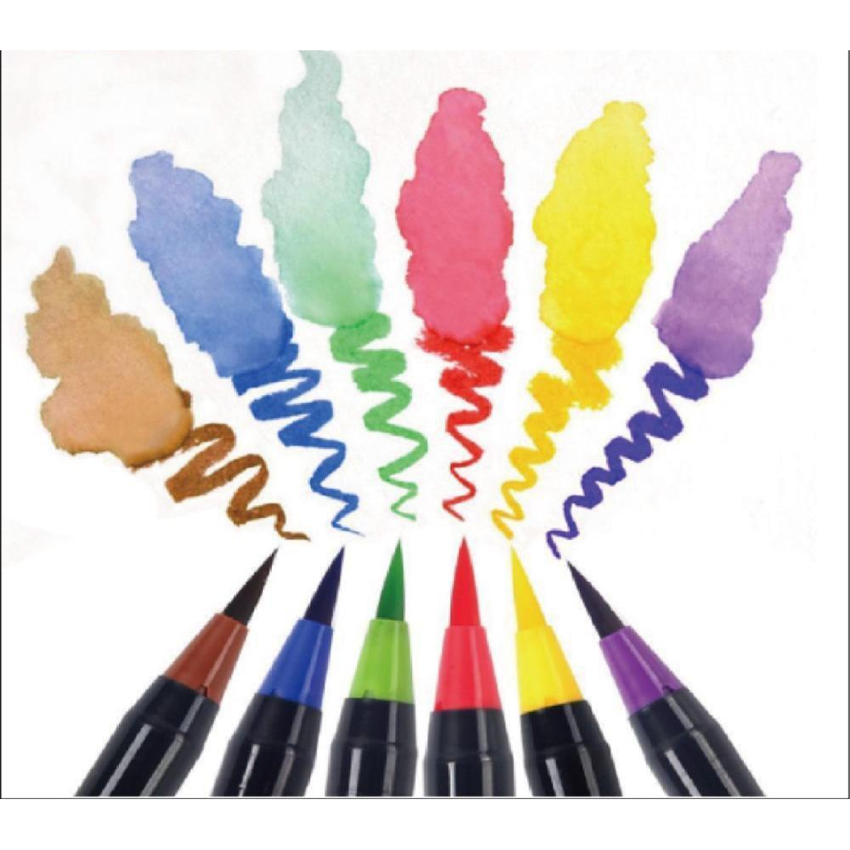 У набір для малювання входять маркери з акварельною фарбою (гамма з 20 відтінків) + пензлик з порожнім резервуаром для води. Чорнило в маркерах - це акварель високої якості, що дозволяє вільно працювати в акварельних або маркерних техніках. Фарба м“яко розмивається, без різких переходів. Чорнило на водній основі нагадують насичені акварельні фарби, тому кольори можна легко змішувати один з одним та ретушувати. Імітують акварель, чисті та зручні у використанні, можна легко застосовувати на відкритому повітрі та швидко створити робочу майстерню. Друга особливість цих чарівних маркерів – це пензель. Вона м“яко і плавно ковзає по папері, лінії немов самі вишиковуються так, як треба. Пензлик середній за розміром, і стійкий до вигинів і “розпушування“. Маркери відрізняються насиченістю та чистими кольорами в оптимальному діапазоні 20-ти найпопулярніших відтінків. Відмінно підходять для малювання в традиційній техніці, при промальовуванні деталей, розфарбовуванні, а також каліграфії - тонкі і товсті лінії малюються дуже легко. Також ці маркери це чудова ідея для подарунка для маленьких художників!