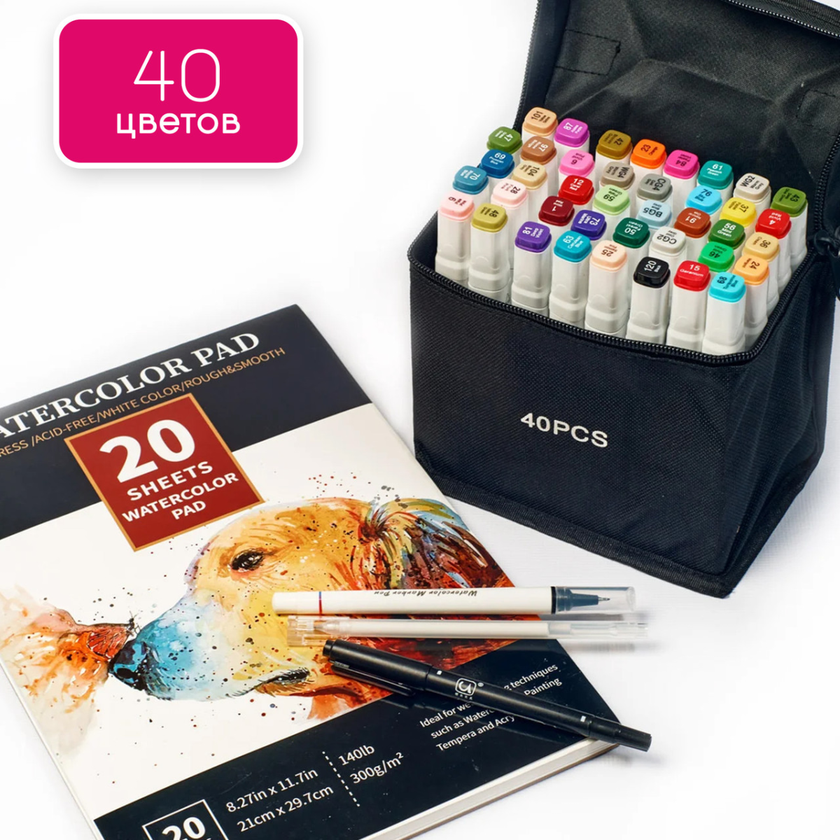 Маркери художні двосторонні спиртові Touch Smooth 40 кольорів + папір для малювання 20 аркушів