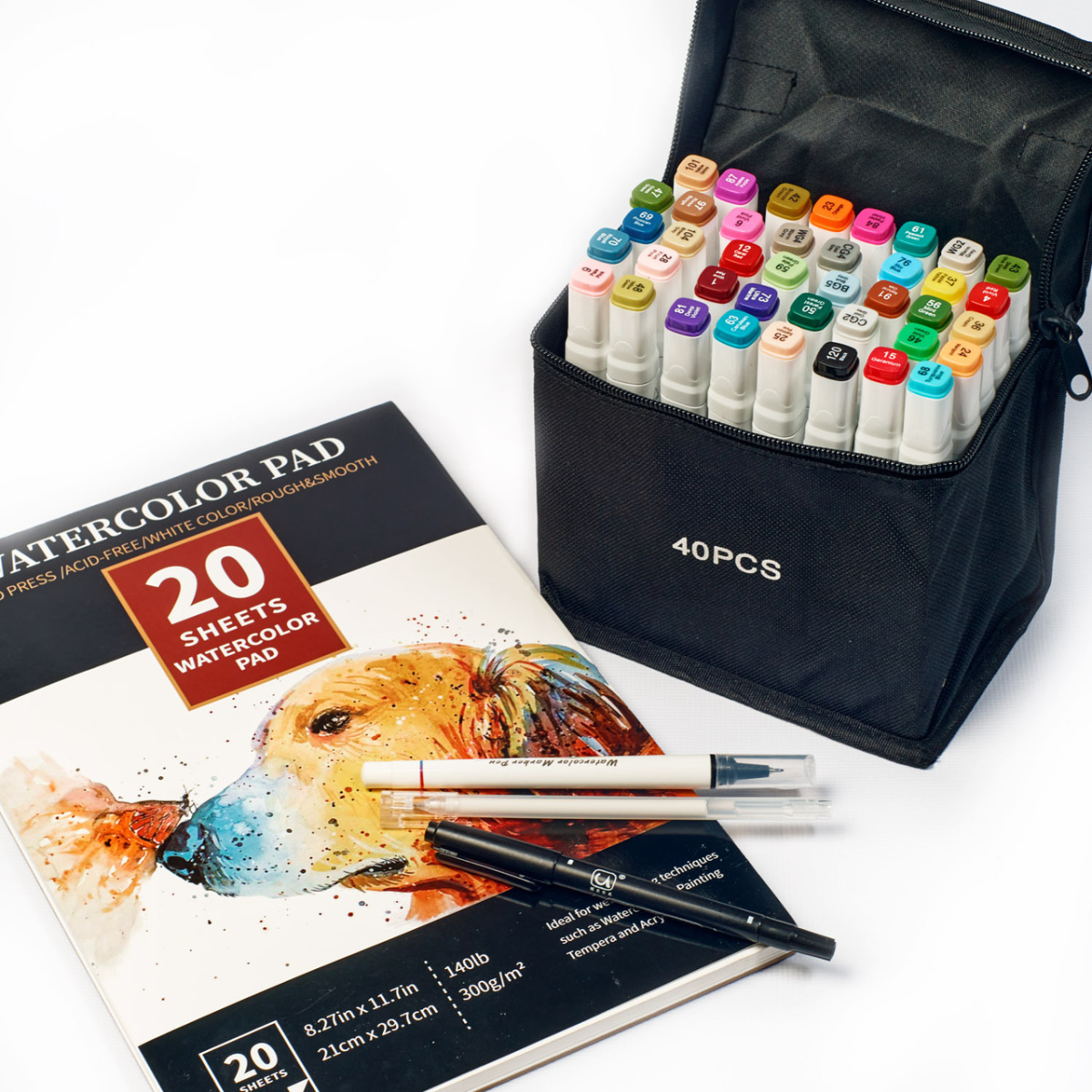 Готовий комплект для малювання та ваших польотів фантазій! ДУЖЕ ВИГІДНА ПРОПОЗИЦІЯ! В комплект входить: Набір маркерів Touch Smooth 40 кольорів + папір для малювання на 20 аркушів 21см х 29.7см + чорні лайнери та маркер у ПОДАРУНОК 1. Папір для скетчингу WATERCOLOR PAD, А4 21 см * 29.7 см, 300 г/м2, 20 аркушів. Альбом складається з дуже гладкого паперу натурального білого кольору, що ідеально підходить для мокрих технік малювання. 2. Спиртові маркери Touch для тих, хто захоплений малюванням та каліграфією, любить створювати комікси та мальовничі ескізи. У наборі 40 маркерів різних кольорів. Корпус пластиковий гладкий. Ковпачки щільно закриваються. Кожен маркер має два наконечники різної форми для різних типів робіт. Загострений наконечник для тонких ліній та контурів. Плоский наконечник із скошеним краєм для широких штрихів. Для зручності розпізнавання типу пера кінці маркерів пофарбовані різним кольором. Кожен колір має свій цифровий код, нанесений на ковпачок маркера. Чорнило на спиртовій основі добре вбирається в папір, тому рекомендується використовувати щільні листи або картон. Кольори добре поєднуються між собою, перехід відтінків плавний. Гарний вибір відтінків для шкіри людини. Довжина маркеру 16,8 см.