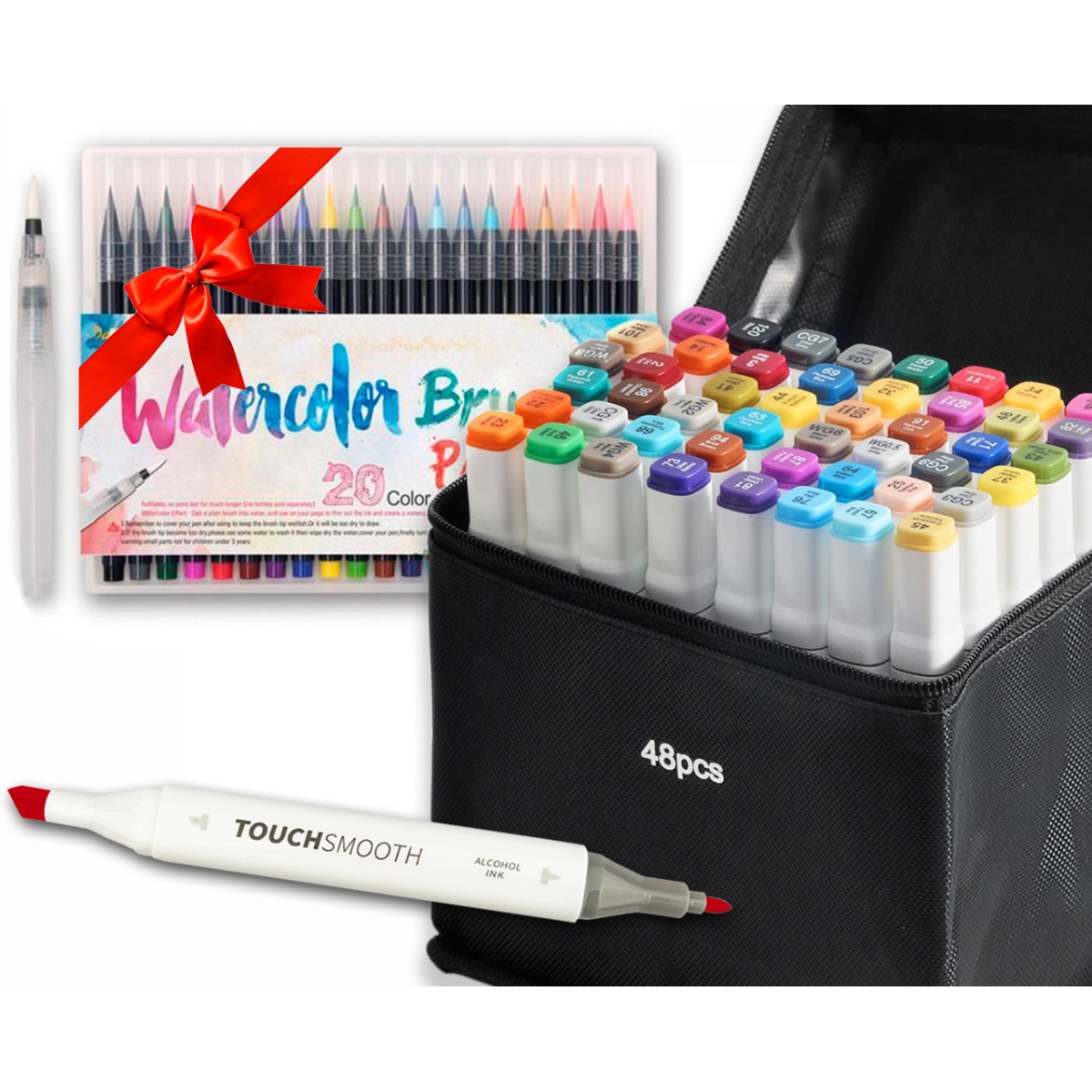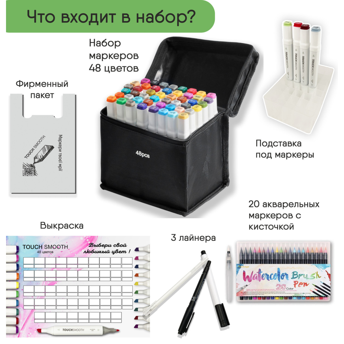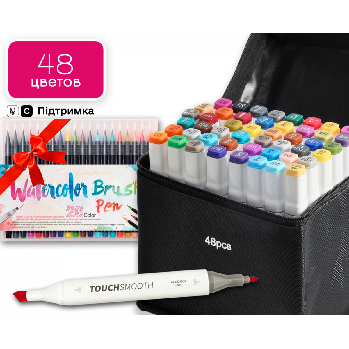 Набір скетч маркерів Touch Smooth на спиртовій основі 48 штук + 20 шт художніх маркери на водній основі