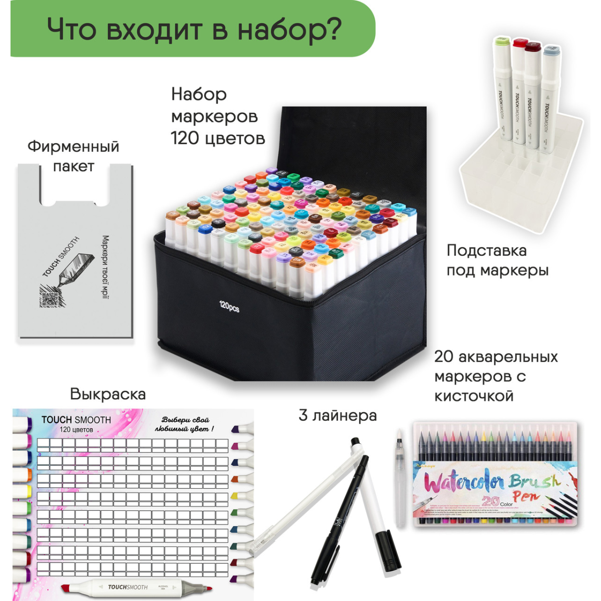 Набір двосторонніх маркерів Touch Smooth для скетчинга на спиртовій основі 120 штук