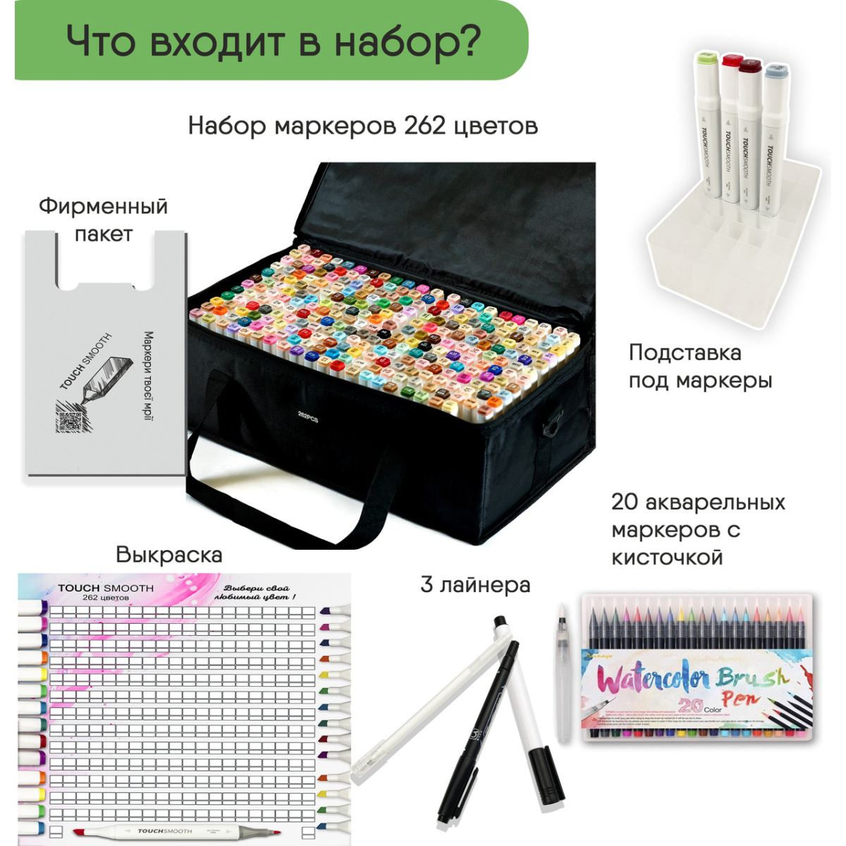 Набір двосторонніх маркерів Touch Smooth для скетчинга на спиртовій основі 262 штук