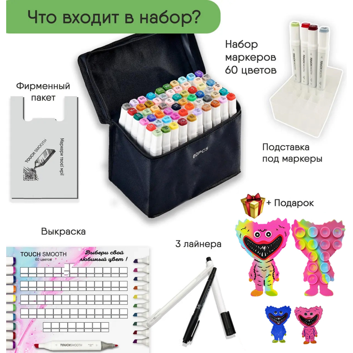 Набір якісних маркерів 60 штук Touch Smooth для скетчинга + Сквідопоп Хагі Вагі