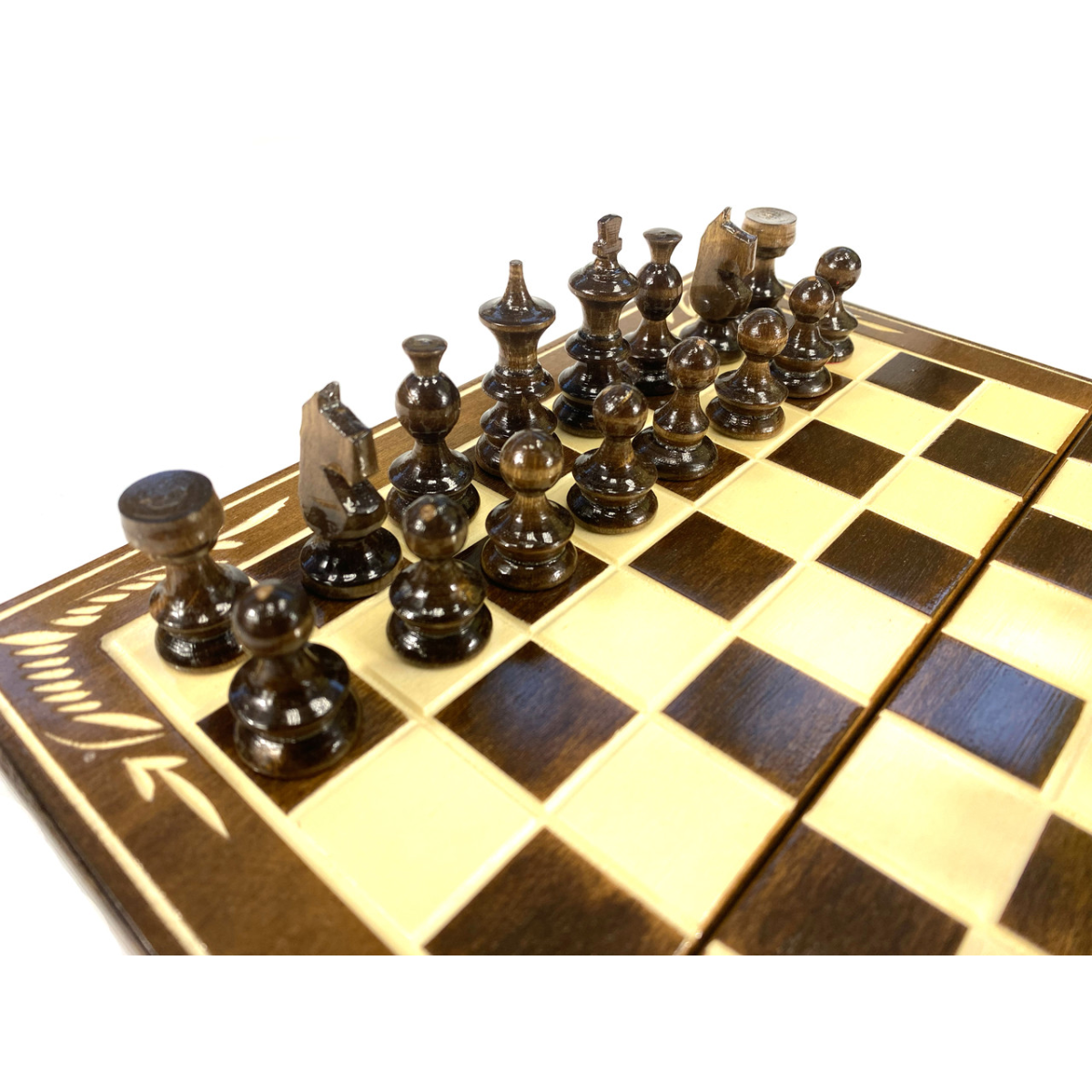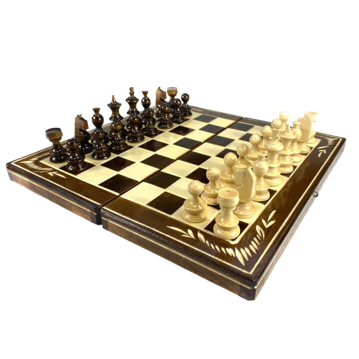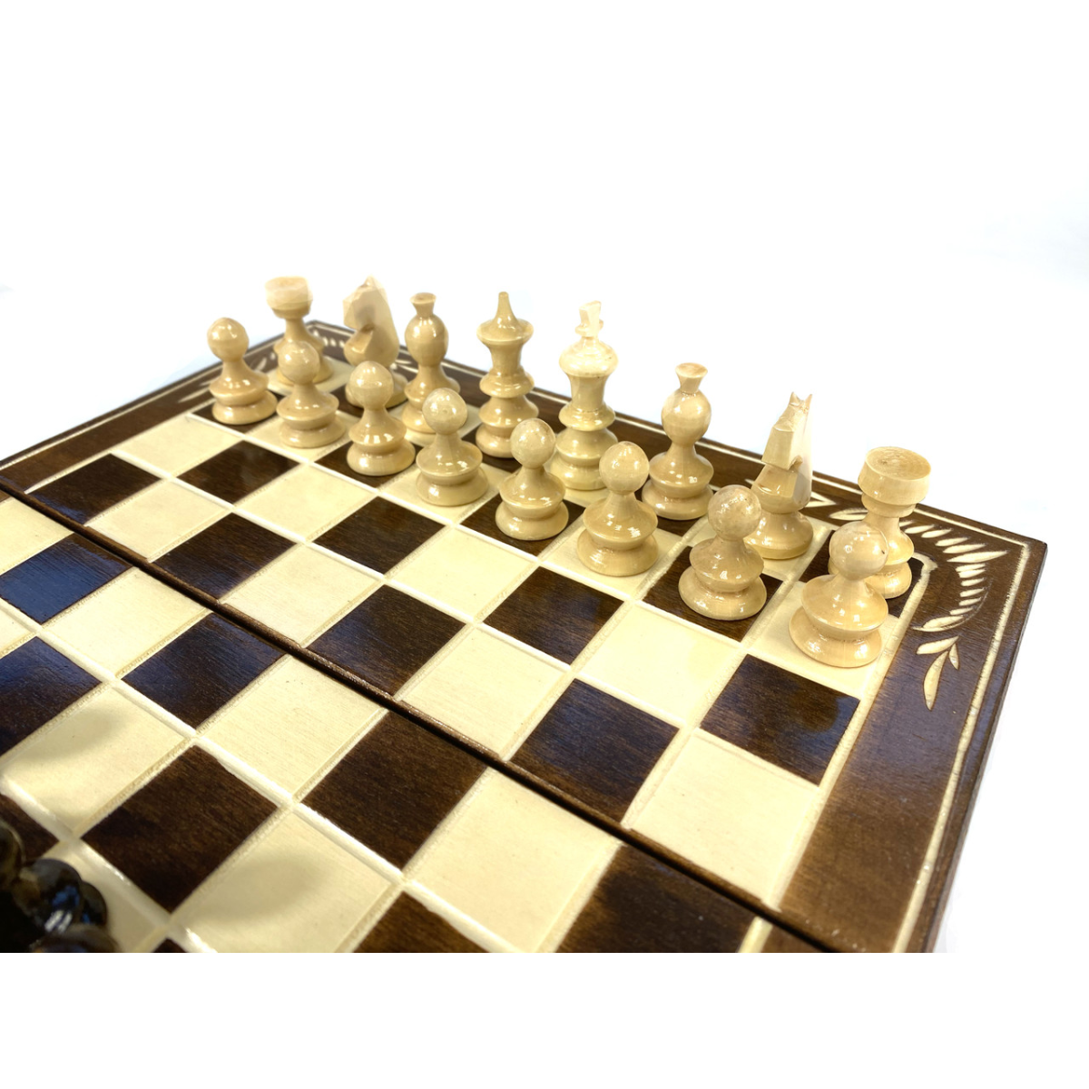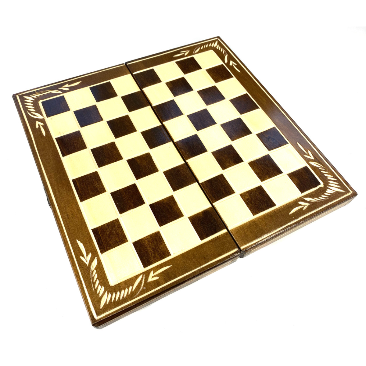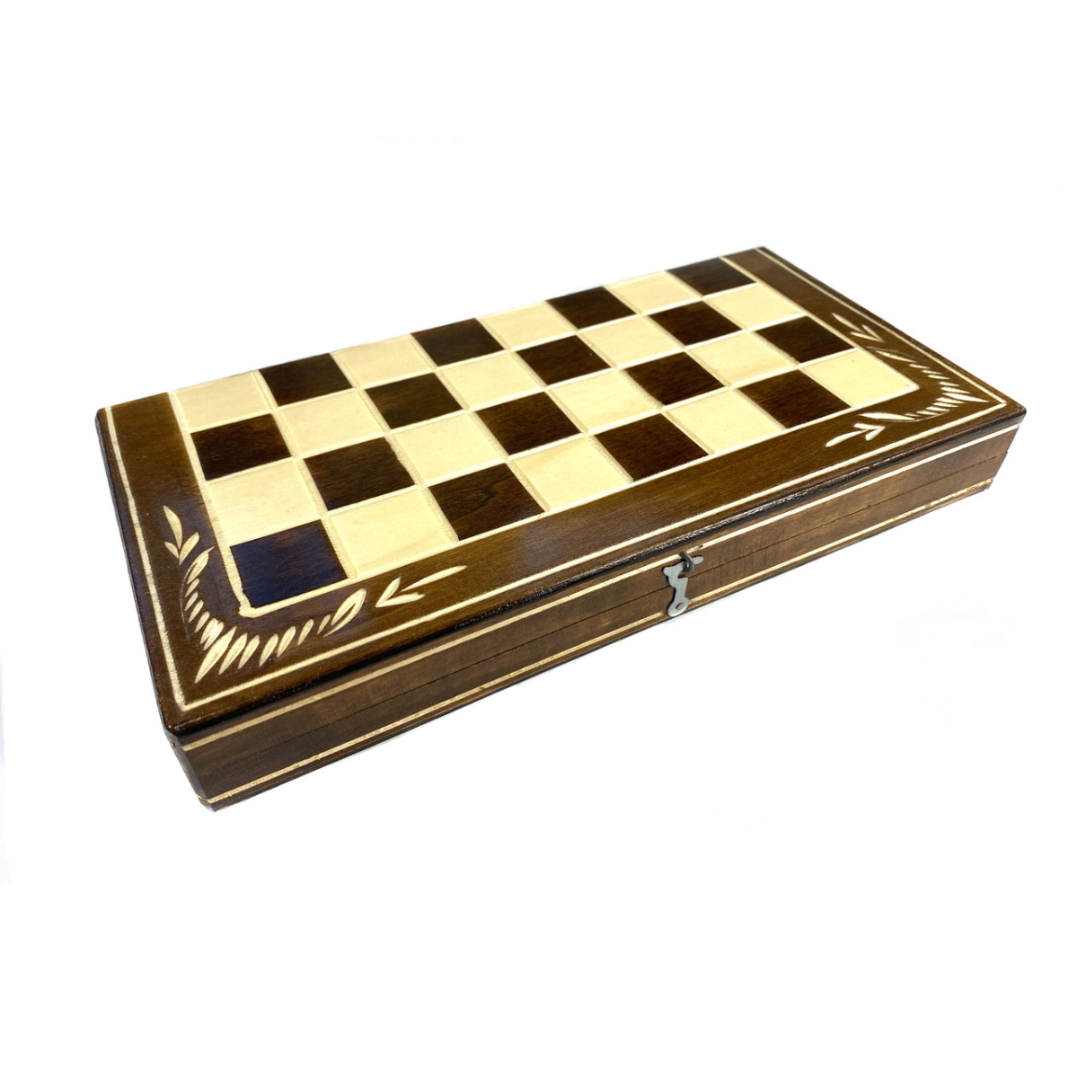 Шахова дошка для ігор 3 в 1 з натурального дерева розмір 27х27 см (S), шахи, шашки та нарди ручної роботи