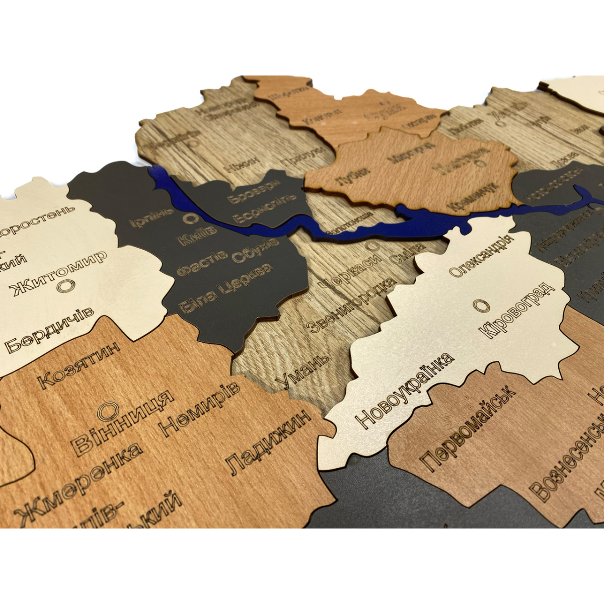 Мапа України з натурального дерева на стіну 74х50 см, велика карта України