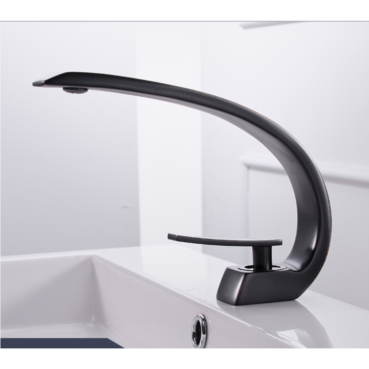 Змішувач дизайнерський для раковини, одноважільний вигнутий кран горизонтальний монтаж WanFan Чорний