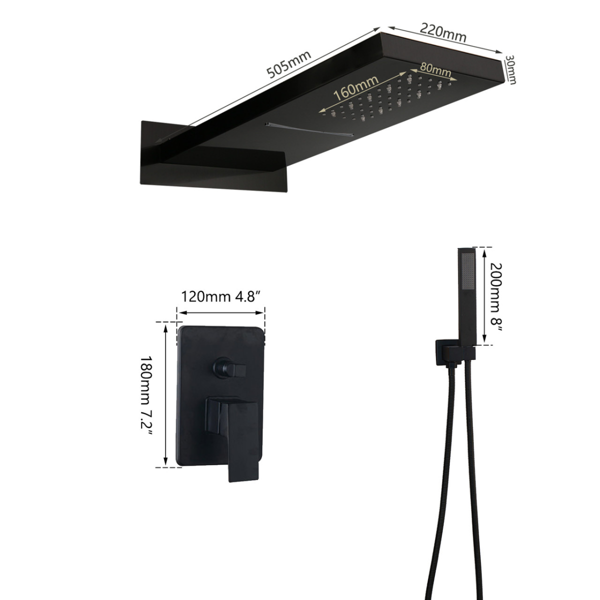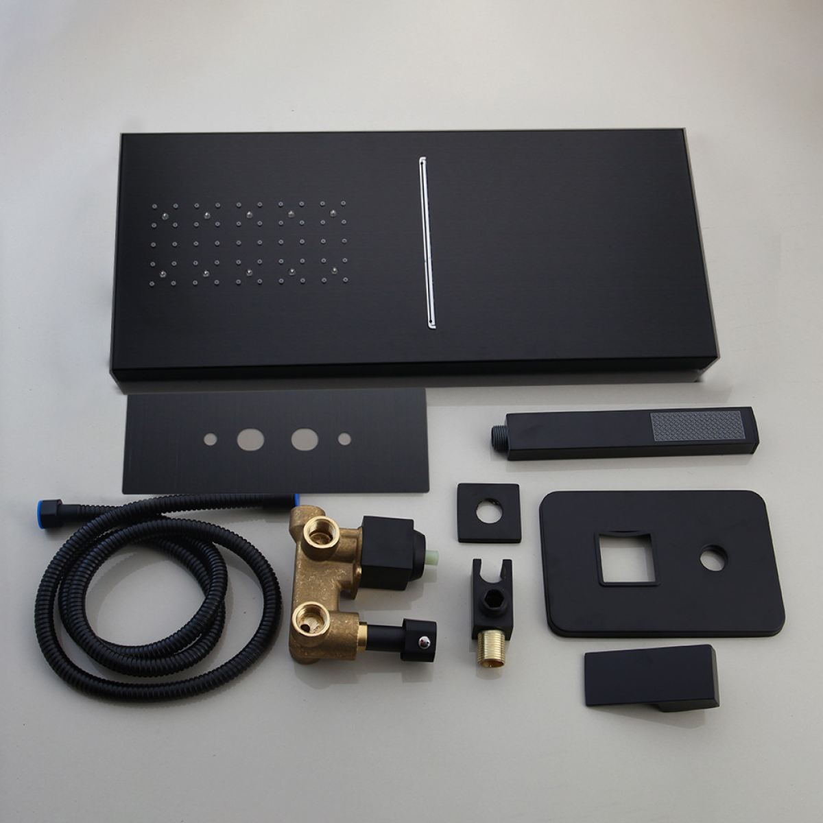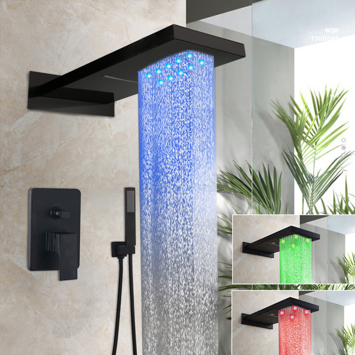 Компанія WanFan є найбільшим світовим виробником і постачальником сантехнічних виробів люкс якості Самий сучасний дизайн і еталон якісної сантехніки це WanFan Даний товар це душова гарнітура WanFan luxury 2в1 складається ручної лійки з тримачем, верхнього квадратного душа і термостатичного змішувача для душу і душового шланга і має температурну підсвічування Ця панель універсальна і дуже зручна у використанні, а її дизайн перетворить вашу ванну кімнату в твори мистецтва ! Душова панель WanFan виготовлений з багатокомпонентного сплаву - латуні. Має оригінальний і стильний зовнішній вигляд. Її властивості, що захищають виріб від корозії, механічного впливу і забезпечують тривалий термін використання. Функція: 3-сторонній світлодіодний змішувач для душу Основний матеріал: латунь Матеріал ручного душу: АБС-пластик Оздоблення: матовий чорний Тип установки: настінний Форма насадки для душу: прямокутник 6 світлодіодних ламп з живленням від потоку води, батарейки не потрібні Колір світлодіода змінюється в залежності від температури води 2-х функціональна прямокутна душова лійка з виходом для дощу і водоспаду 4 світлодіода працюють з функцією дощу, 2 світлодіоди працюють з функцією водоспаду Міцний 3-ходовий регулюючий клапан для насадки дощу / водоспаду і перемикач ручного душу Легко встановити і очистити