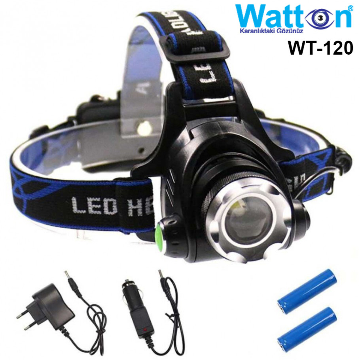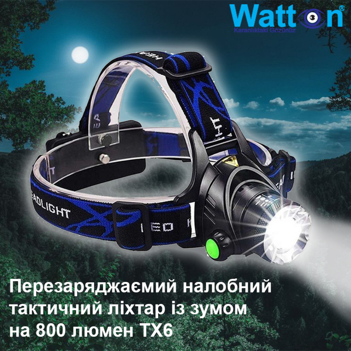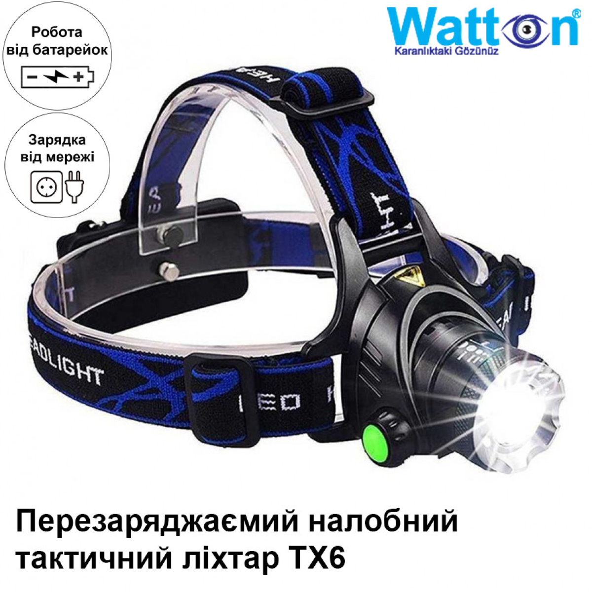Тактичний налобний акумуляторний ліхтар із зумом на 800 люмен TX6 WT-120, 2 акумуляторні батареї в комплекті