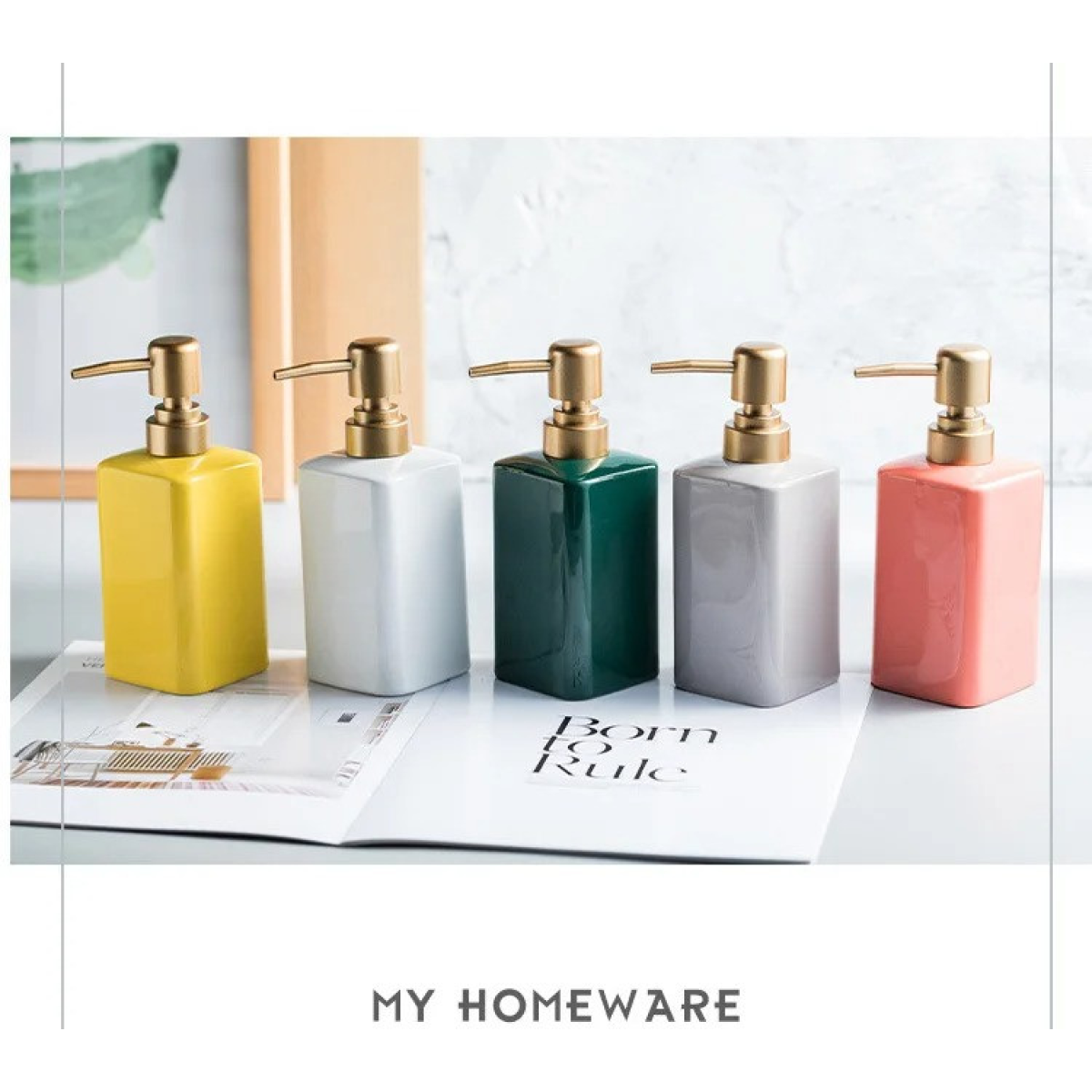 Стильний диспенсер для мила з кераміки на 320 мл, пляшка з дозптором для рідкого мила чи шампуню, Зелений