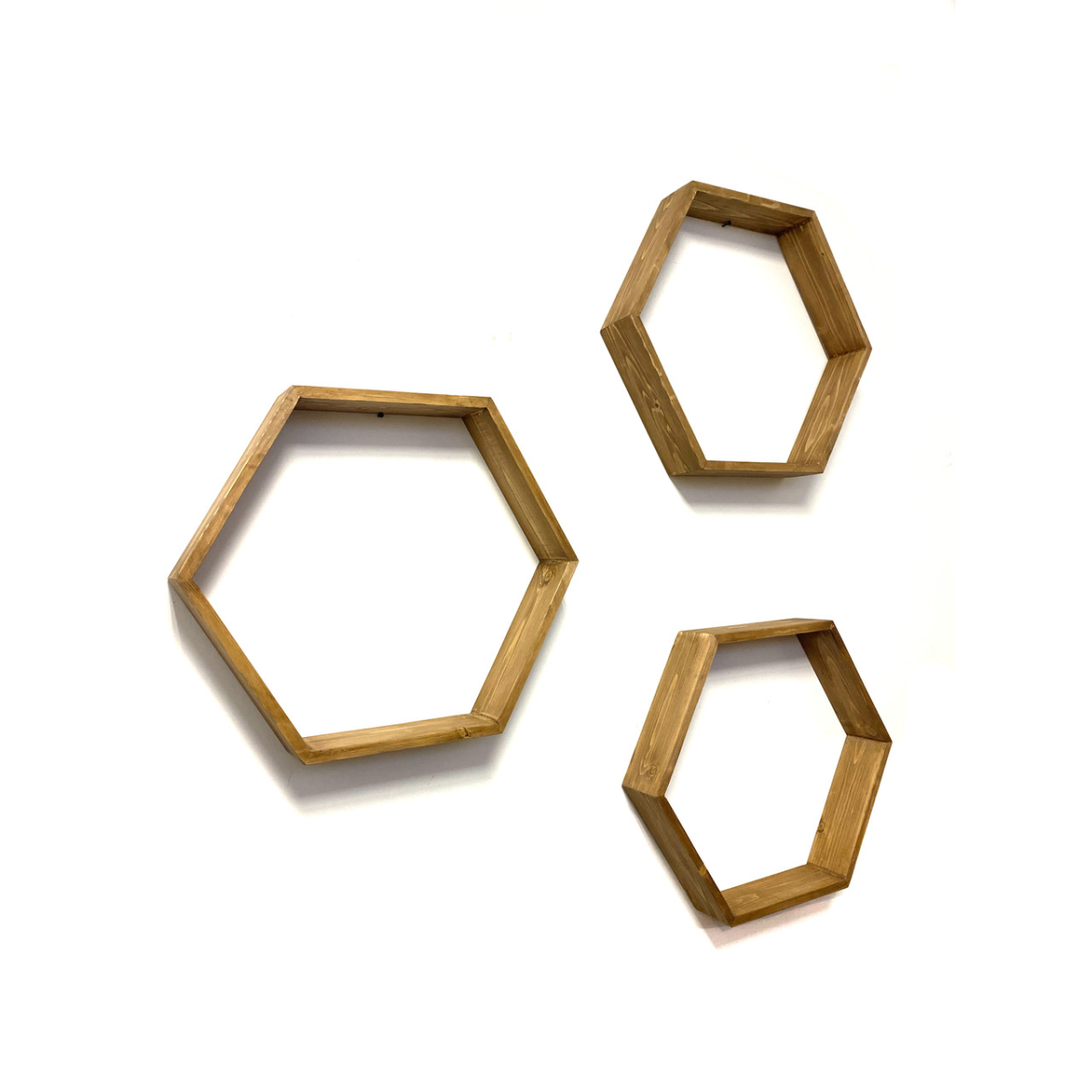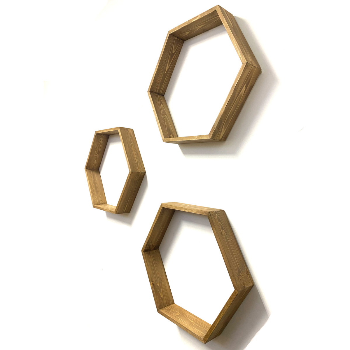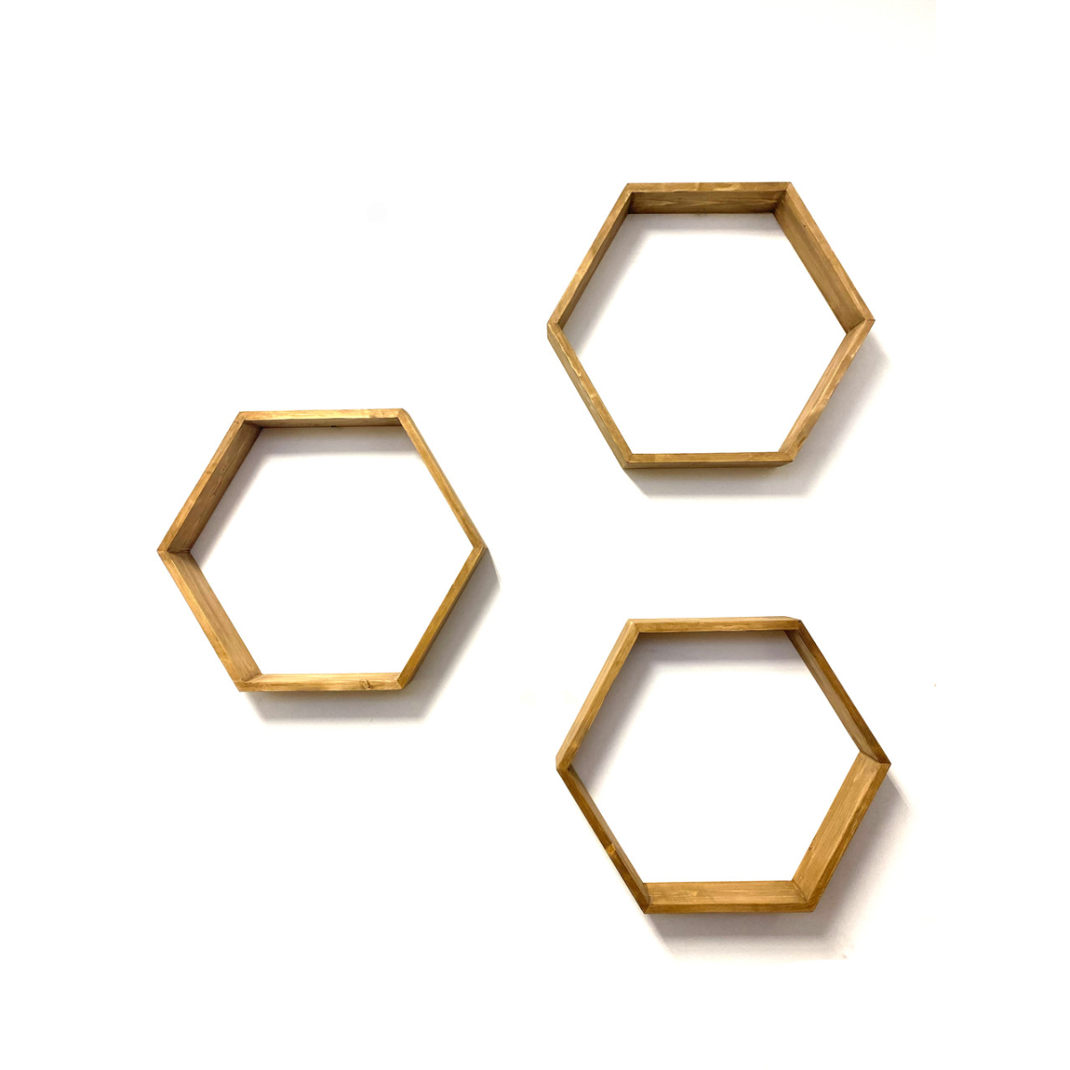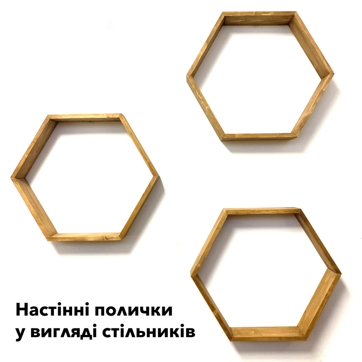 Комплект з трьох дерев“яних поличок у вигляді бджолиних стільників, дерево - ялина, натуральний та екологічний продукт