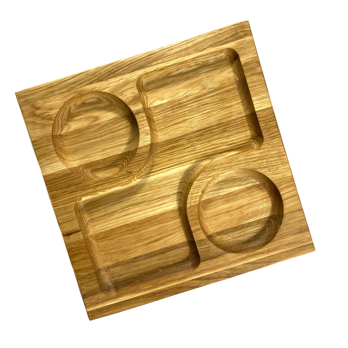Деревʼяна тарілка прямокутна з натурального дерева для закусок, закусочна тарілка 25х25х2,5 см