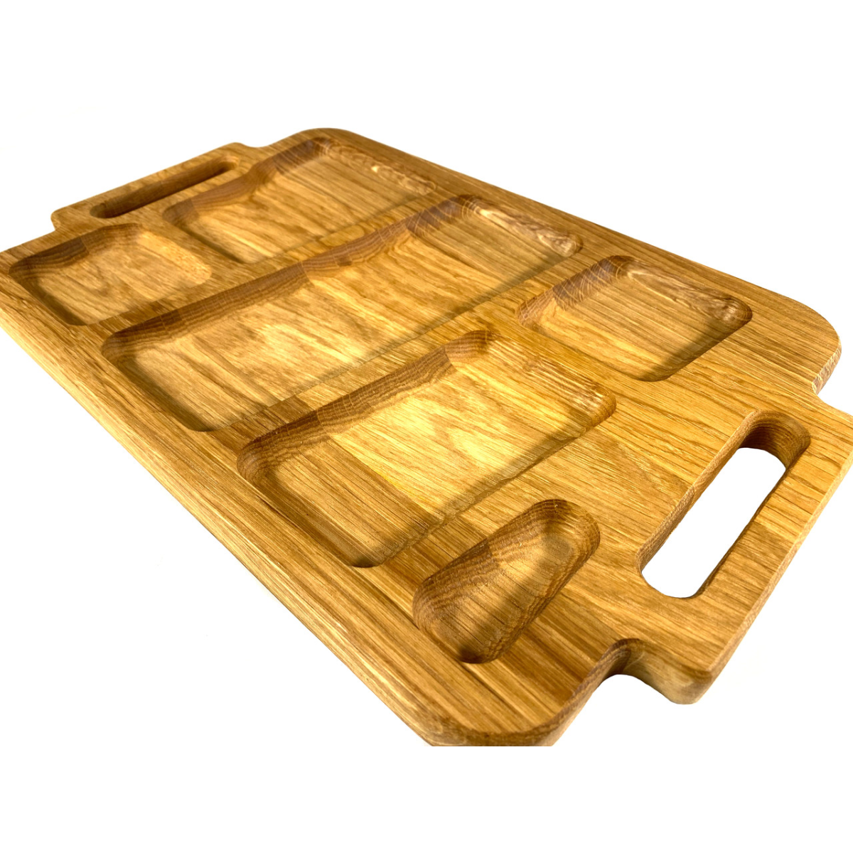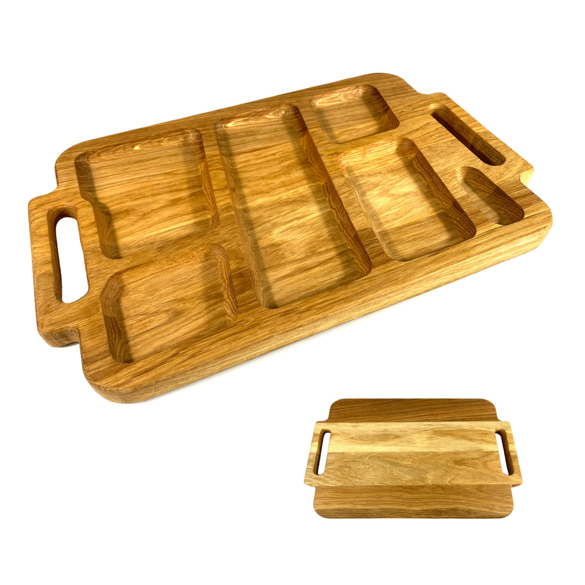 Ласкаво запрошуємо до світу натуральних дерев“яних тарілок, що стануть незамінним елементом вашого столу. Наш асортимент включає в себе чудові закусочні тарілки різних діаметрів від 25 до 30 см та різних форм - круглі, овальні, квадратні, з ручками та без них. Кожна тарілка виготовлена з цільного дерева товщиною 2 см та вирізана з різноманітними ємностями, ідеальними для подачі різноманітних закусок. Від смачних фруктів до апетитних горішків, вони будуть виглядати дуже привабливо на наших тарілках. Кожен екземпляр оброблений вручну, щоб надати йому гладку поверхню та приємний блиск. Наші тарілки - це не лише стильний аксесуар для вашого столу, але й практичний і безпечний варіант для подачі їжі. Довіртеся натуральному дереву та відчуйте неперевершену якість і естетику наших виробів.