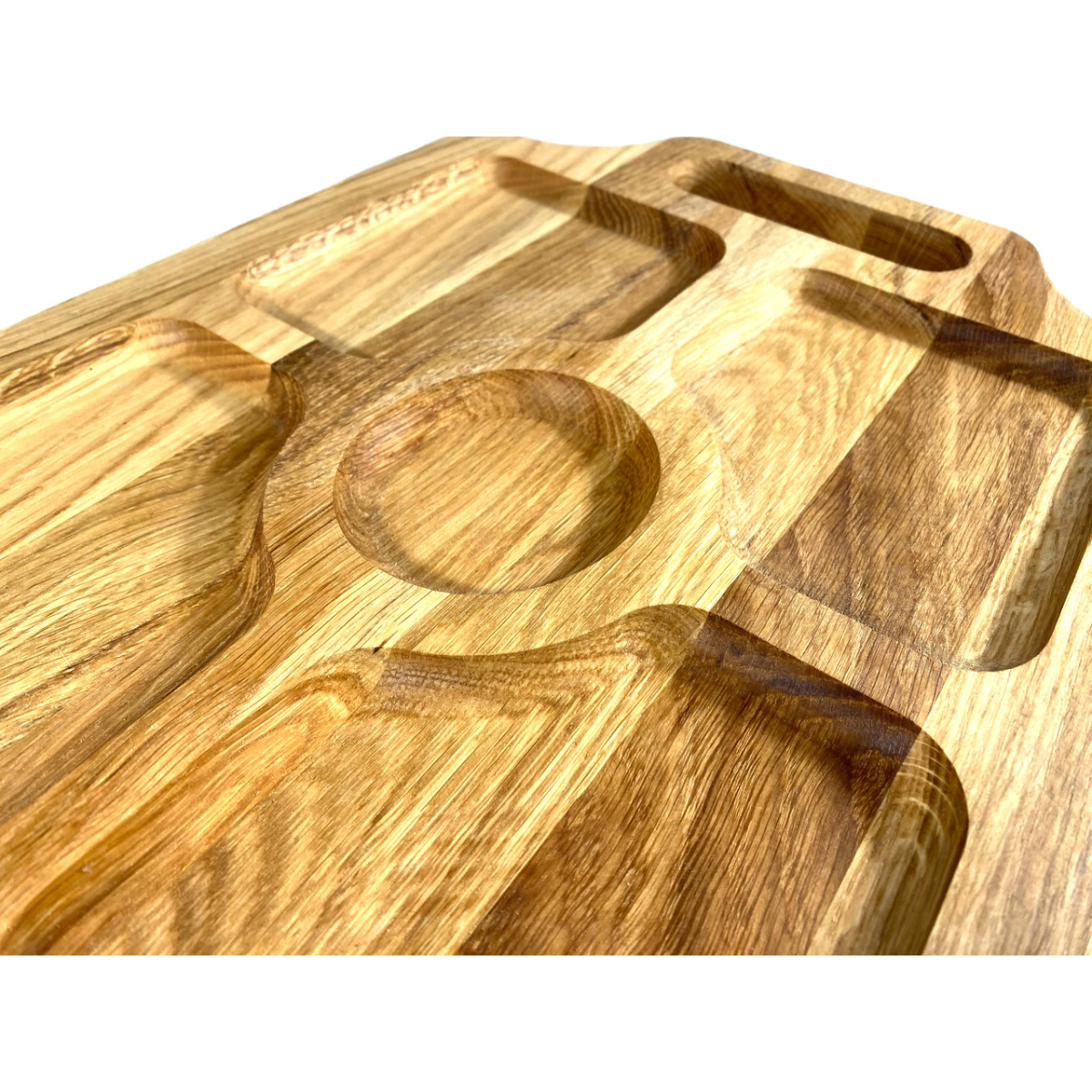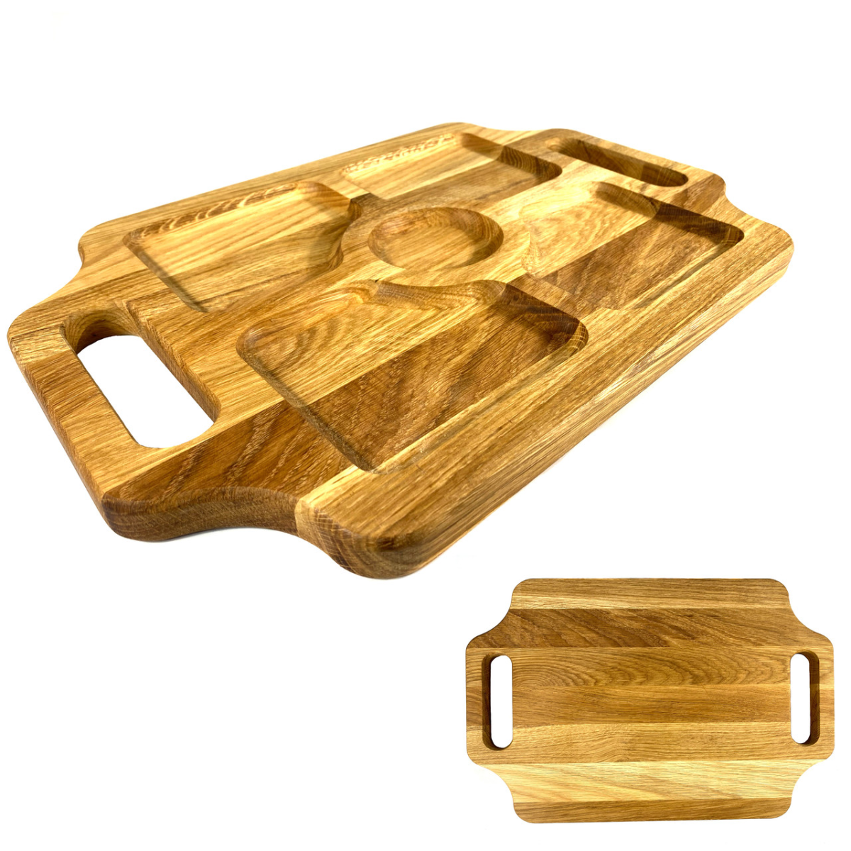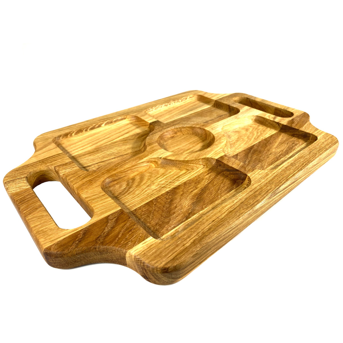 Ласкаво запрошуємо до світу натуральних дерев“яних тарілок, що стануть незамінним елементом вашого столу. Наш асортимент включає в себе чудові закусочні тарілки різних діаметрів від 25 до 30 см та різних форм - круглі, овальні, квадратні, з ручками та без них. Кожна тарілка виготовлена з цільного дерева товщиною 2 см та вирізана з різноманітними ємностями, ідеальними для подачі різноманітних закусок. Від смачних фруктів до апетитних горішків, вони будуть виглядати дуже привабливо на наших тарілках. Кожен екземпляр оброблений вручну, щоб надати йому гладку поверхню та приємний блиск. Наші тарілки - це не лише стильний аксесуар для вашого столу, але й практичний і безпечний варіант для подачі їжі. Довіртеся натуральному дереву та відчуйте неперевершену якість і естетику наших виробів.