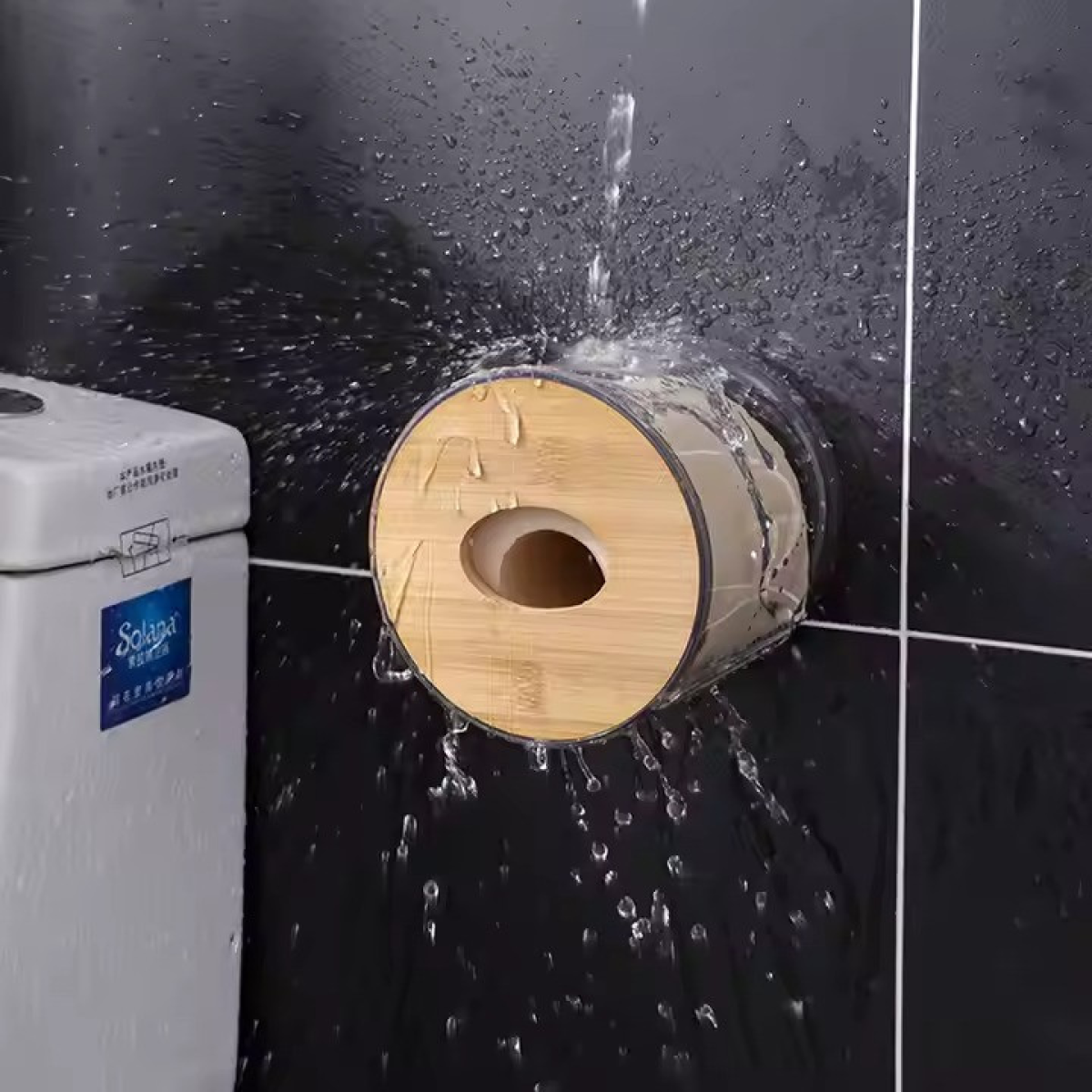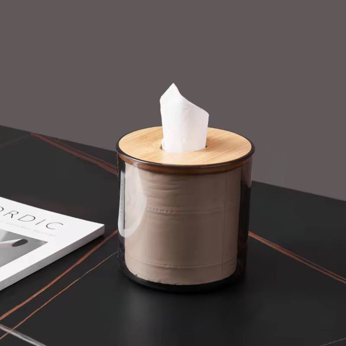Органайзер-контейнер для серветок, пластиковий круглий з дерев“яною кришкою