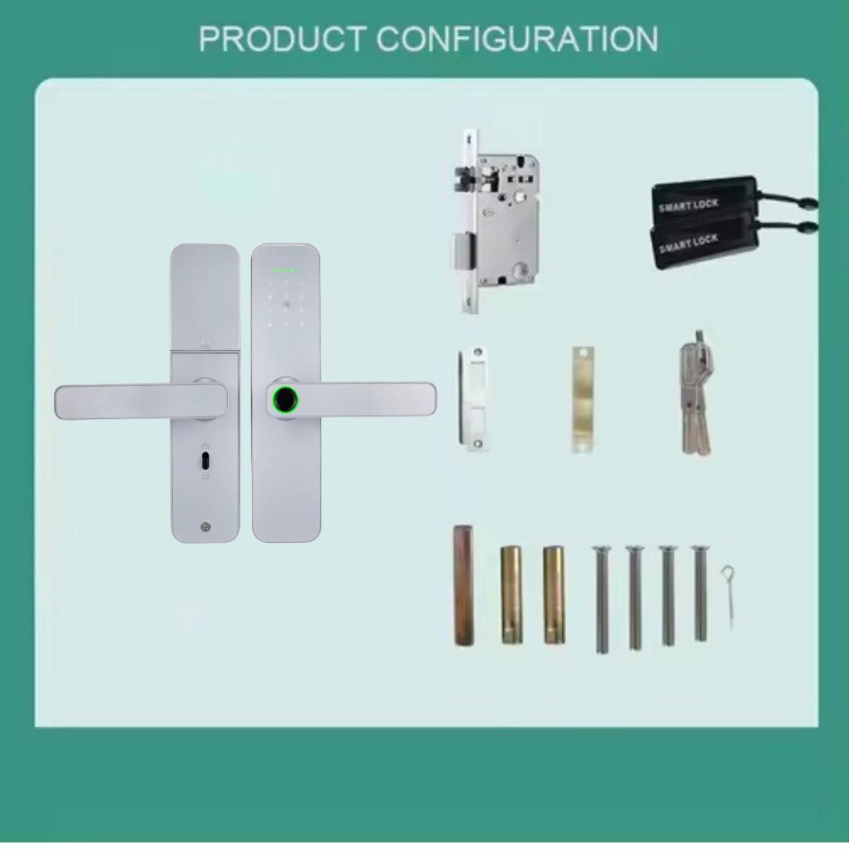 Замок KHS-F005 легко інтегрується із застосунком Tuya, що дає змогу віддалено керувати доступом, переглядати історію відкриттів і контролювати пристрій через Wi-Fi. Пристрій сумісний із дверима товщиною від 38 до 55 мм і має врізний механізм розміром 22*160 5050. Шестизначні паролі забезпечують надійний захист, а якісний напівпровідниковий датчик відбитків пальців миттєво розпізнає користувача.