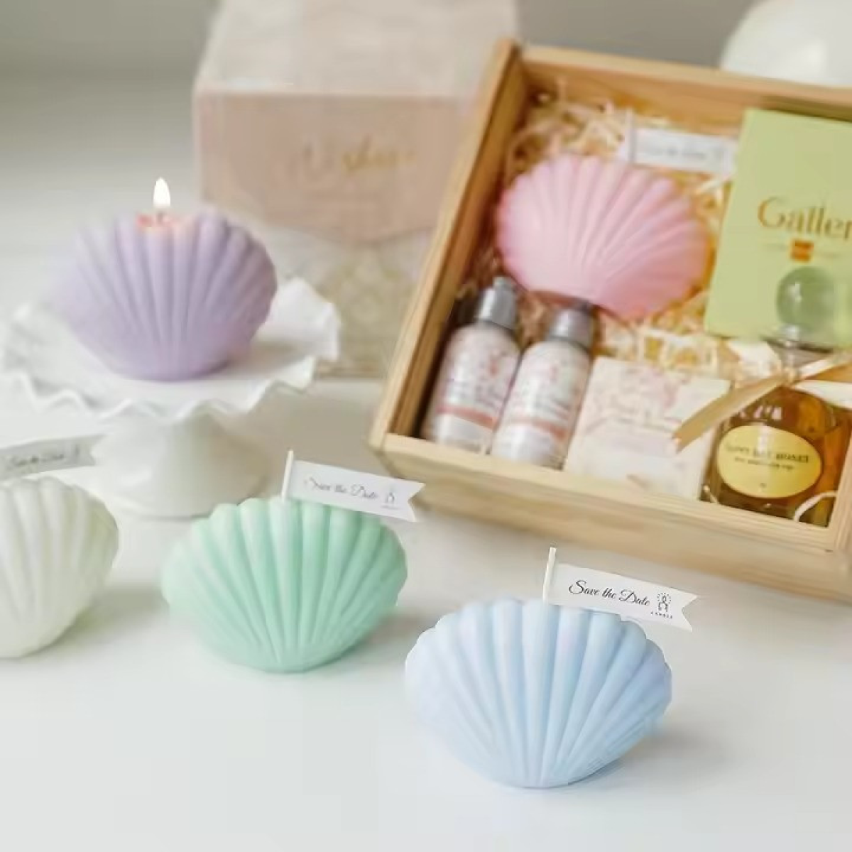 Свічка «Морська мушля» ручної роботи блакитного кольору
