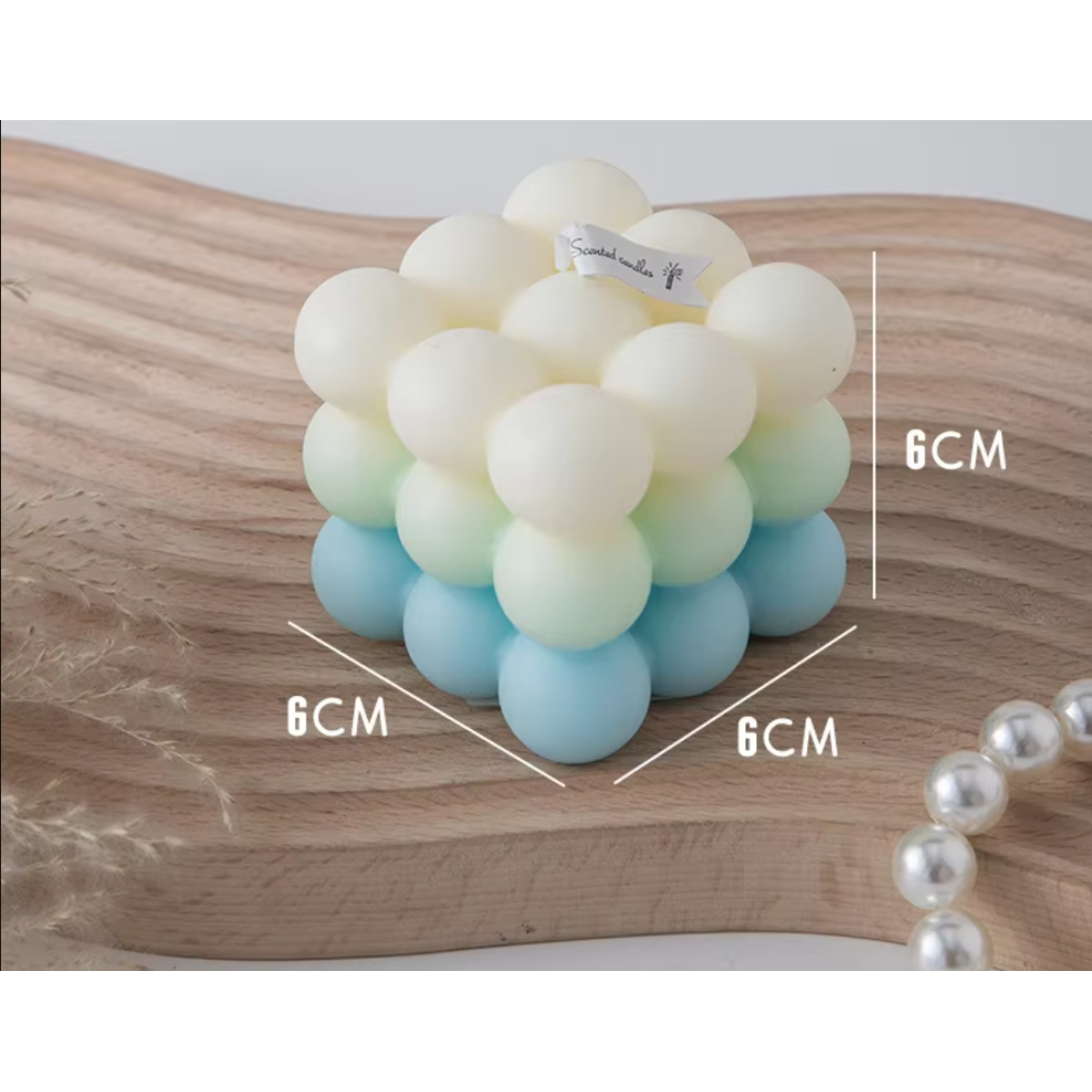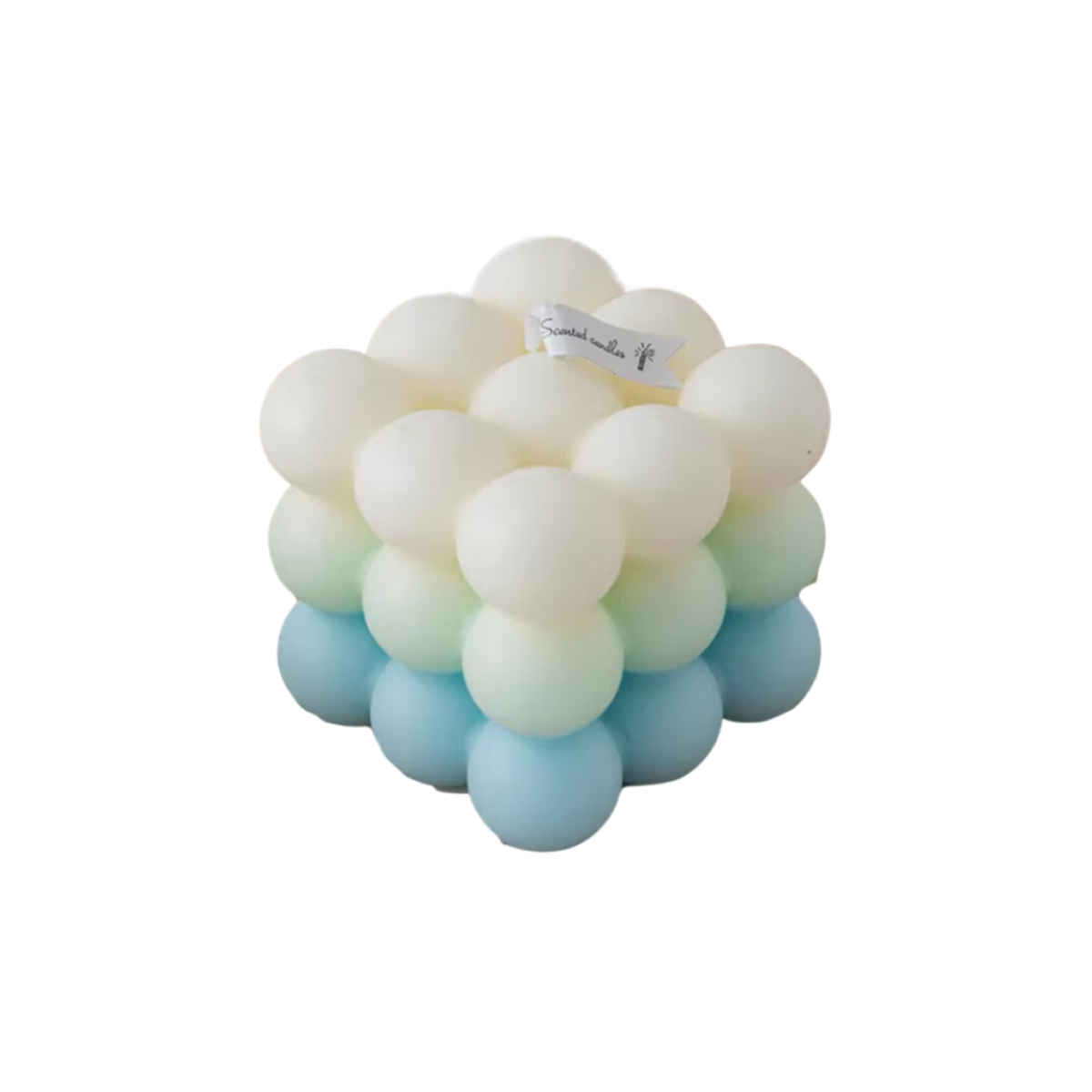 Свічка “Кубик бульбашок“ ручної роботи колір блакитний,зелений,білий