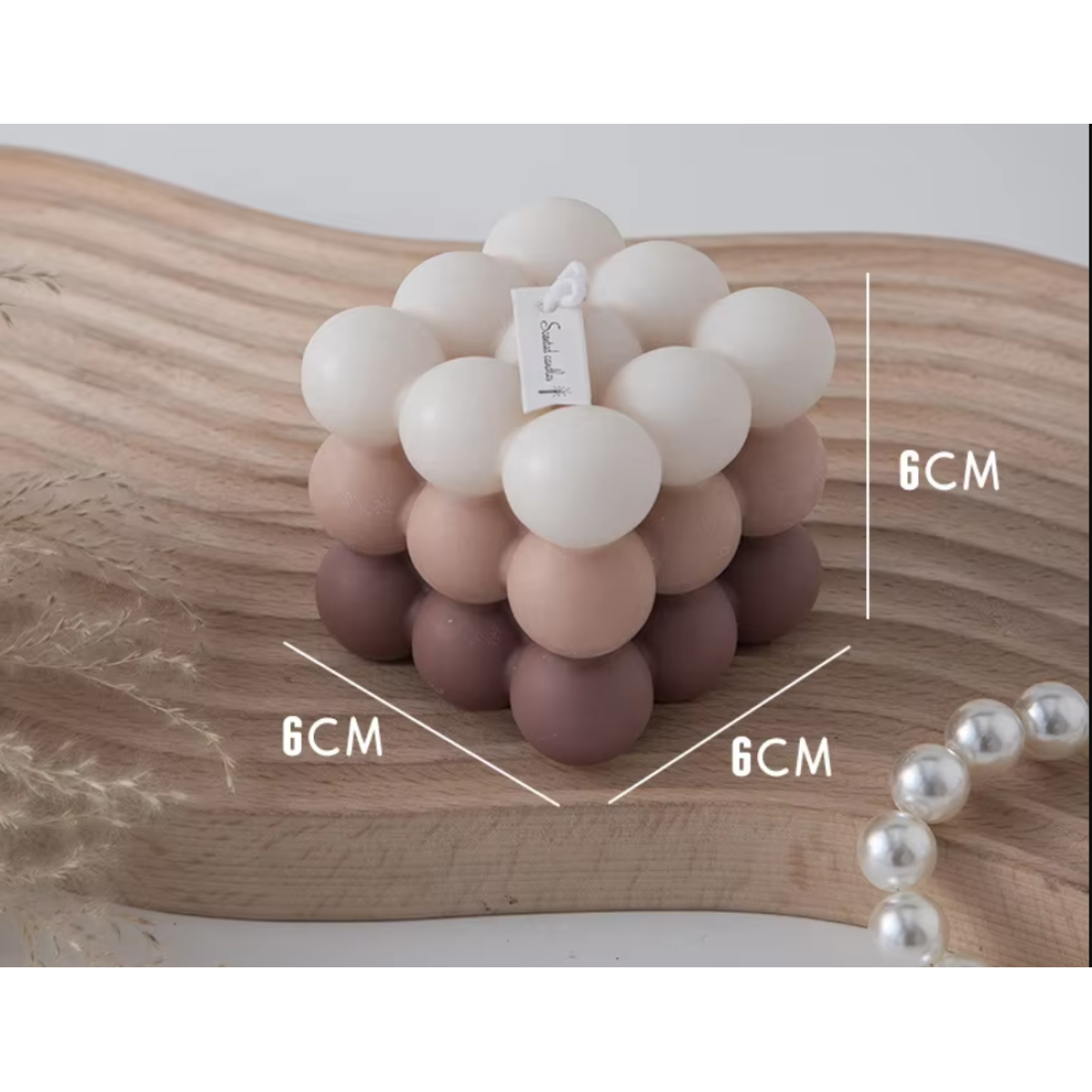 Свічка “Кубик бульбашок“ ручної роботи в коричневому кольорі
