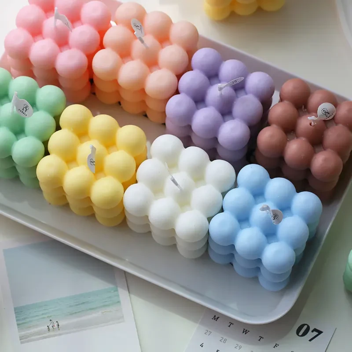 Свічка у формі бульбашковий куб ручної роботи - це стильне та оригінальне доповнення до будь-якого інтер“єру. Її унікальний дизайн, що нагадує гірську вершину, і компактні розміри 6 х 6 см роблять цю свічку ідеальною для прикраси робочого столу, полиці або журнального столика. Вона створить теплу і розслаблюючу атмосферу в будь-якому куточку вашого будинку, привносячи нотку природного затишку і спокою. Натуральні матеріали та безпечне горіння Свічка виготовлена з високоякісного парафіну, що забезпечує тривале та рівномірне горіння. Ці матеріали екологічні та безпечні, не виділяють шкідливих речовин під час горіння, що робить свічку ідеальною для регулярного використання в закритих приміщеннях. Вага свічки - 170 г, даючи їй змогу довго радувати своїм м“яким світлом. Ідеальний подарунок і прикраса Ця свічка стане чудовим подарунком для поціновувачів оригінальних декоративних елементів. Її незвичайний зовнішній вигляд і функціональність додадуть родзинку в будь-який інтер“єр. Підійде як для особистого використання, так і як стильний подарунок друзям і близьким. Особливості: Розмір: 6 х 6 х 5.5 см Матеріал: парафін Вага: 170 г Унікальний дизайн у бульбашковий куб