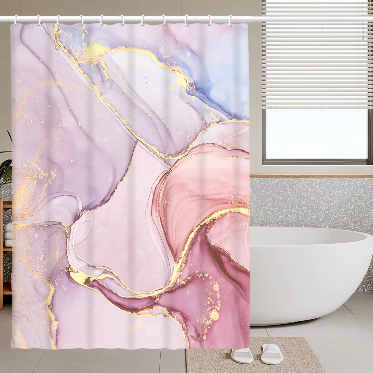 Шторка для душу та ванної кімнати з водовідштовхувальним покриттям, колір рожевий 3D-принт