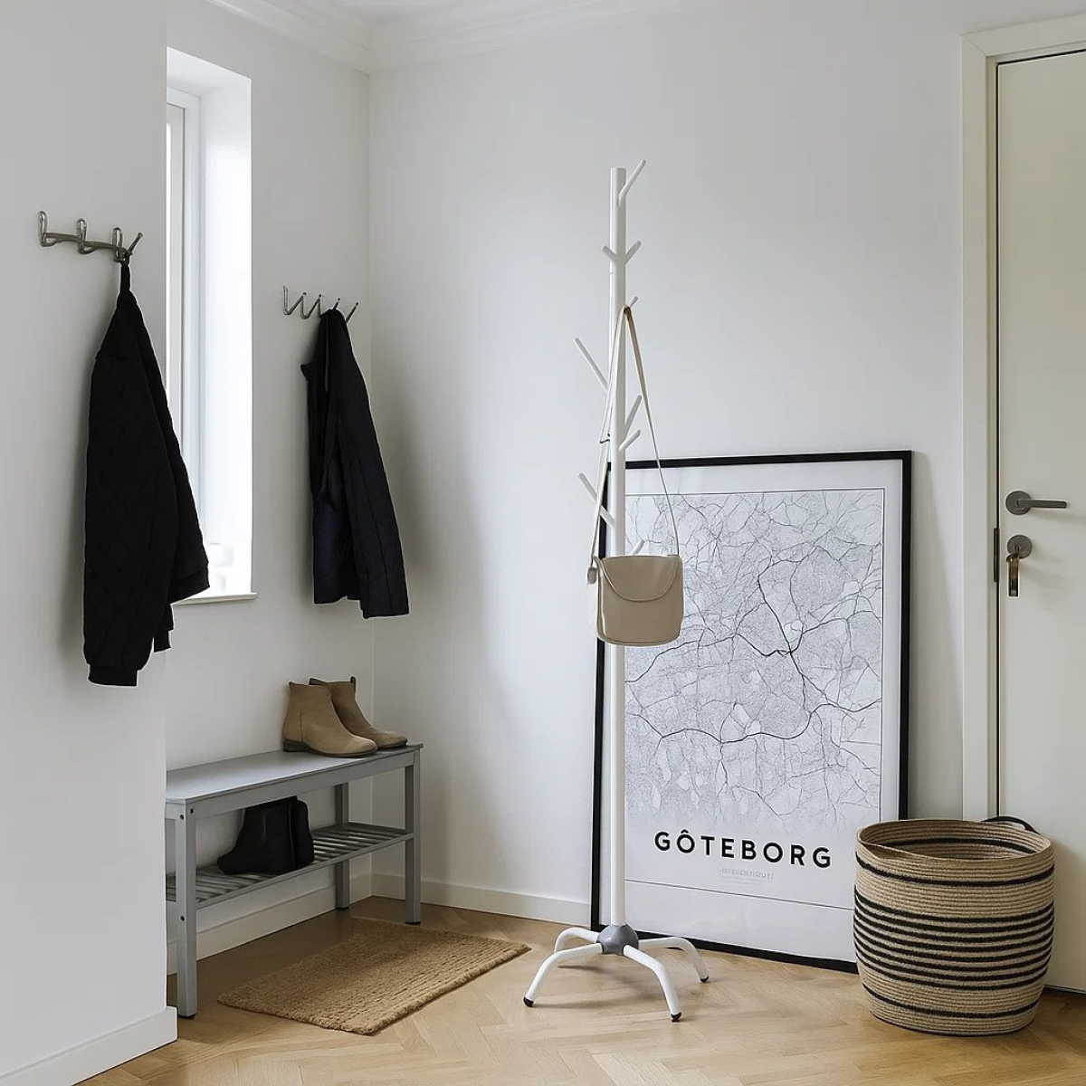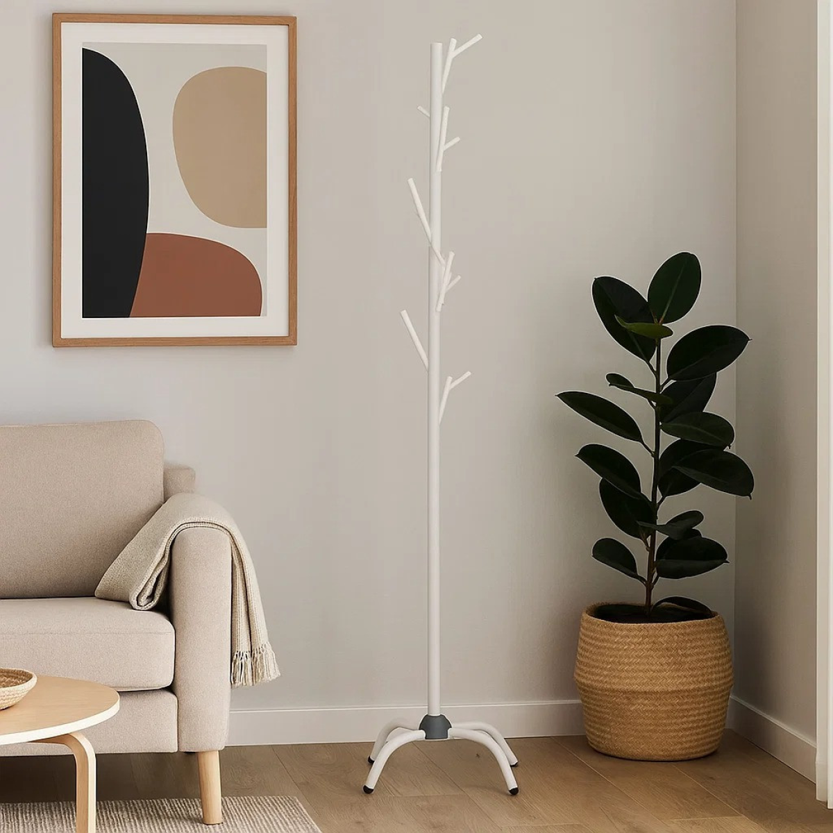 Вішалка для верхнього одягу та головних уборів висота 174 см підлогова на ніжках, сталева, біла