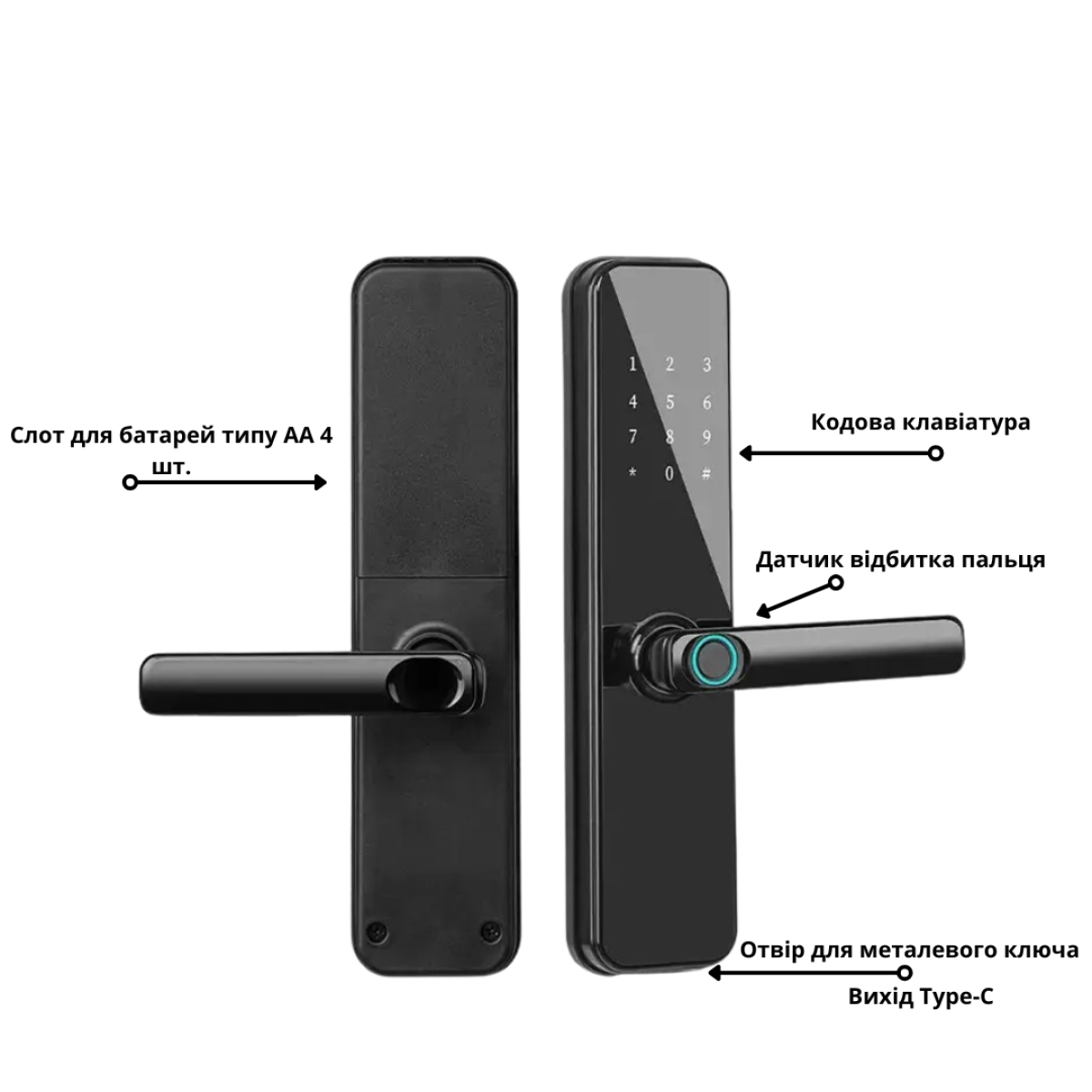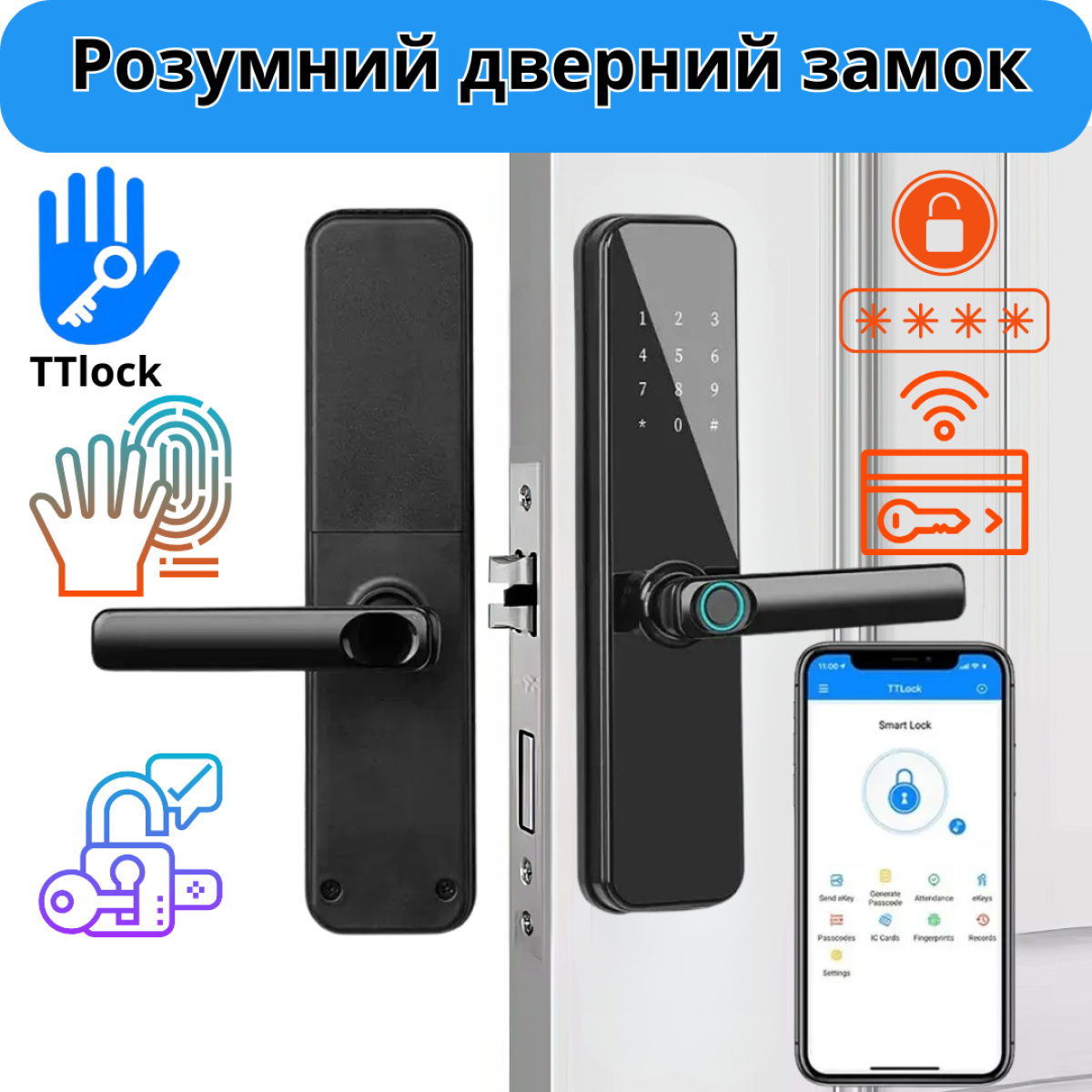 Способи відкриття: відбиток пальця, пароль, карта, ключ, додаток TTlock