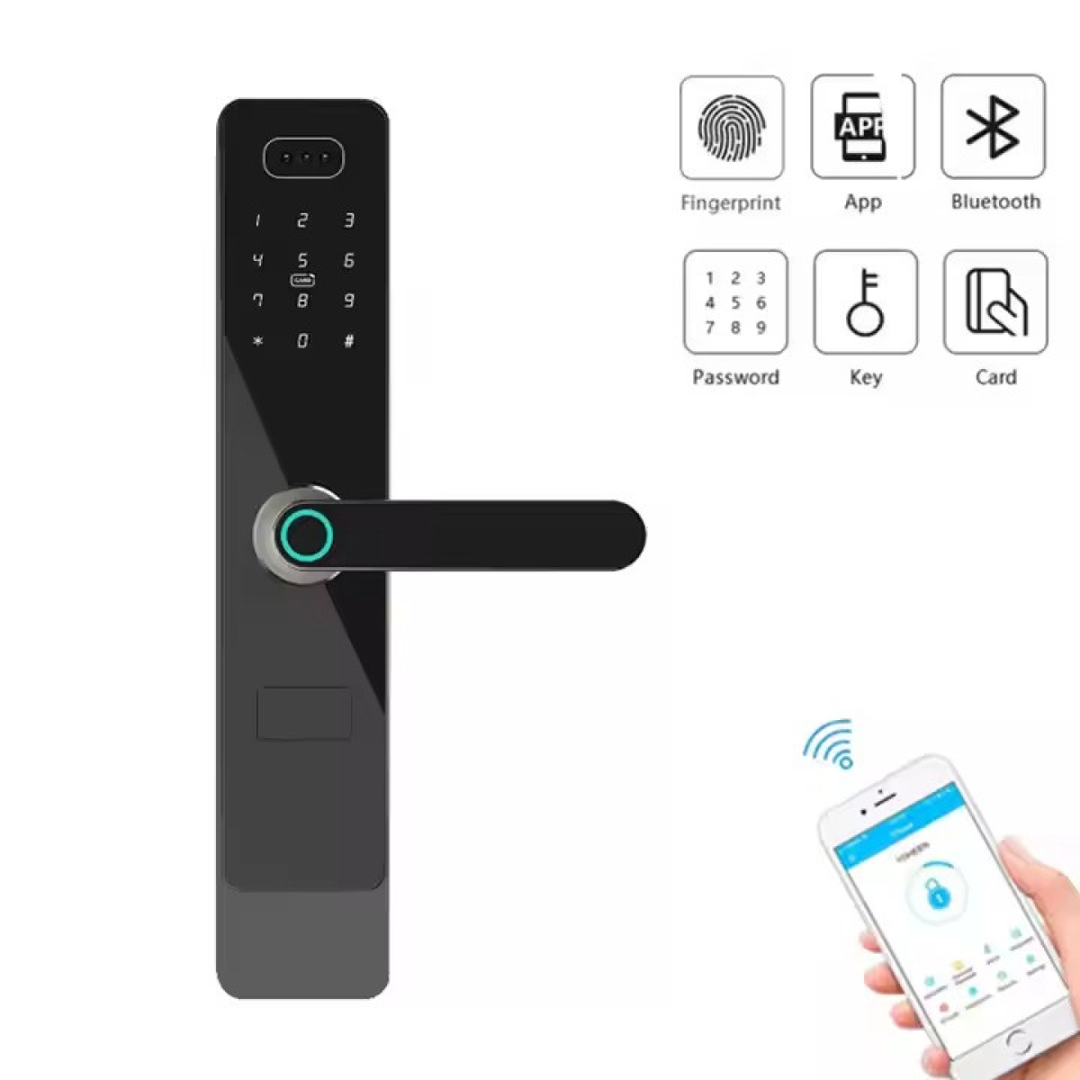 Смарт замок кодовий розумний дверний KHS-DA01 з відбитком пальця і ключ-картою і розблокуванням по обличчю, чорний