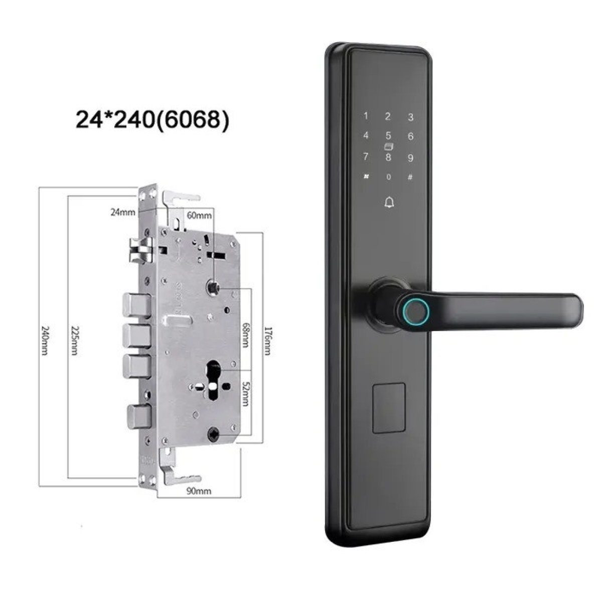 Замок виготовлено з алюмінієвого сплаву, що забезпечує його довговічність і стійкість до зношування. Він підходить для встановлення у двері товщиною від 40 до 120 мм, а стандарт врізки 24*240 6068 мм робить його універсальним рішенням. Пристрій працює за температури від -20℃ до +70℃, що дає змогу використовувати його в різних кліматичних умовах.