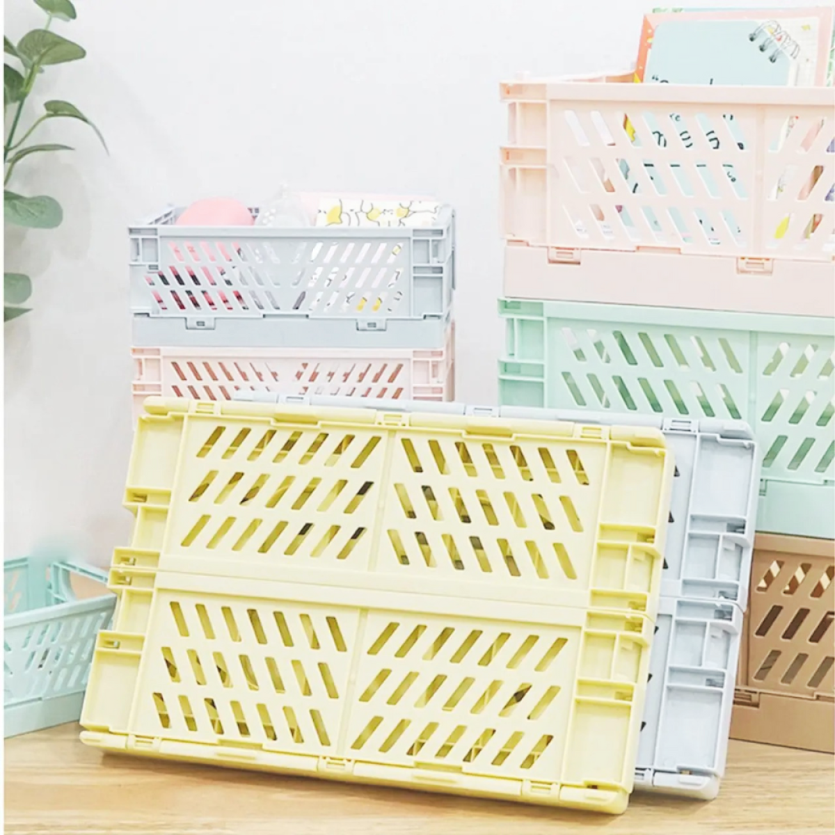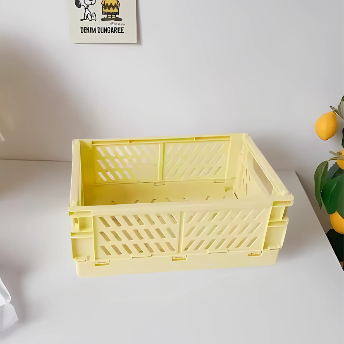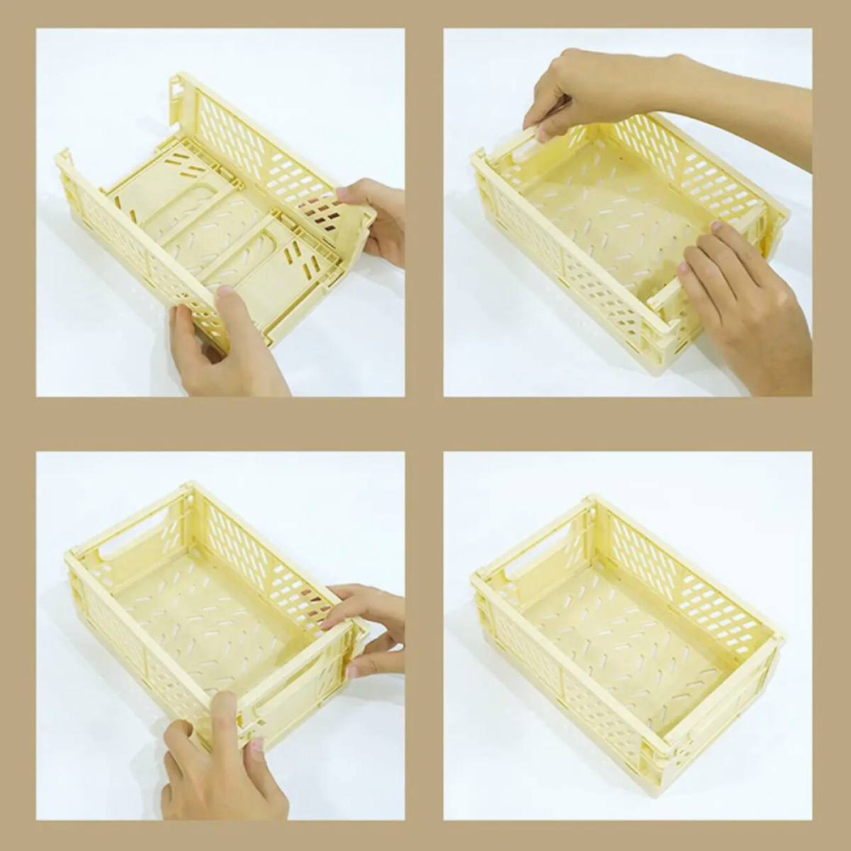 Пластиковий органайзер, складний кошик для зберігання, контейнер з ручками, 15×9.8×5.7см, колір бежевий