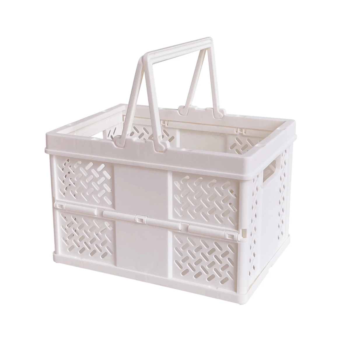 Складний кошик для зберігання з ручками, пластиковий органайзер для дрібниць, 24×18×16см, колір білий