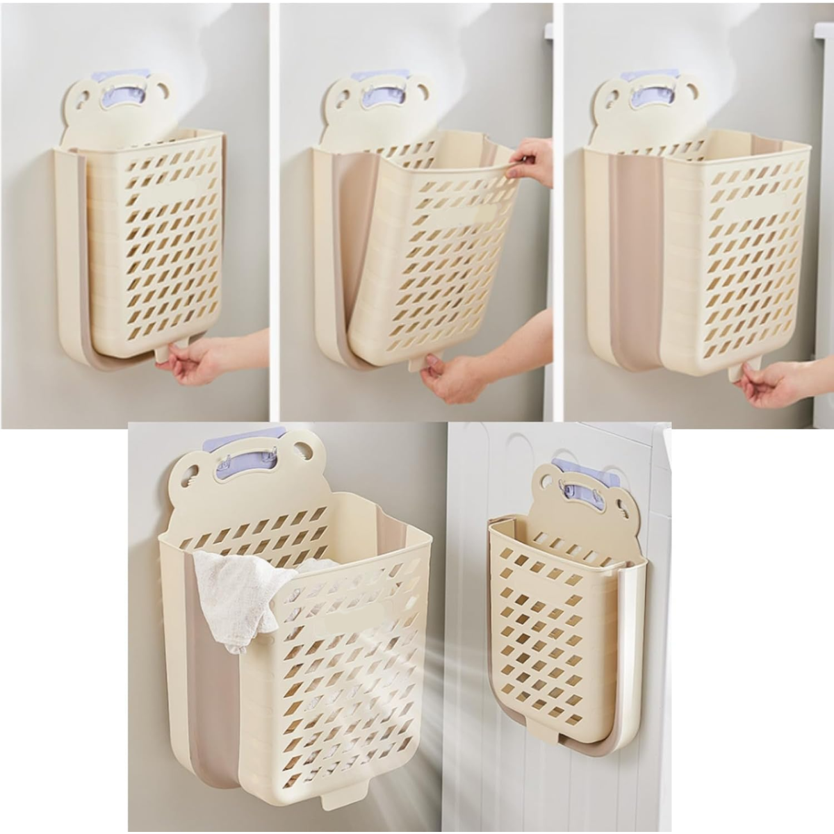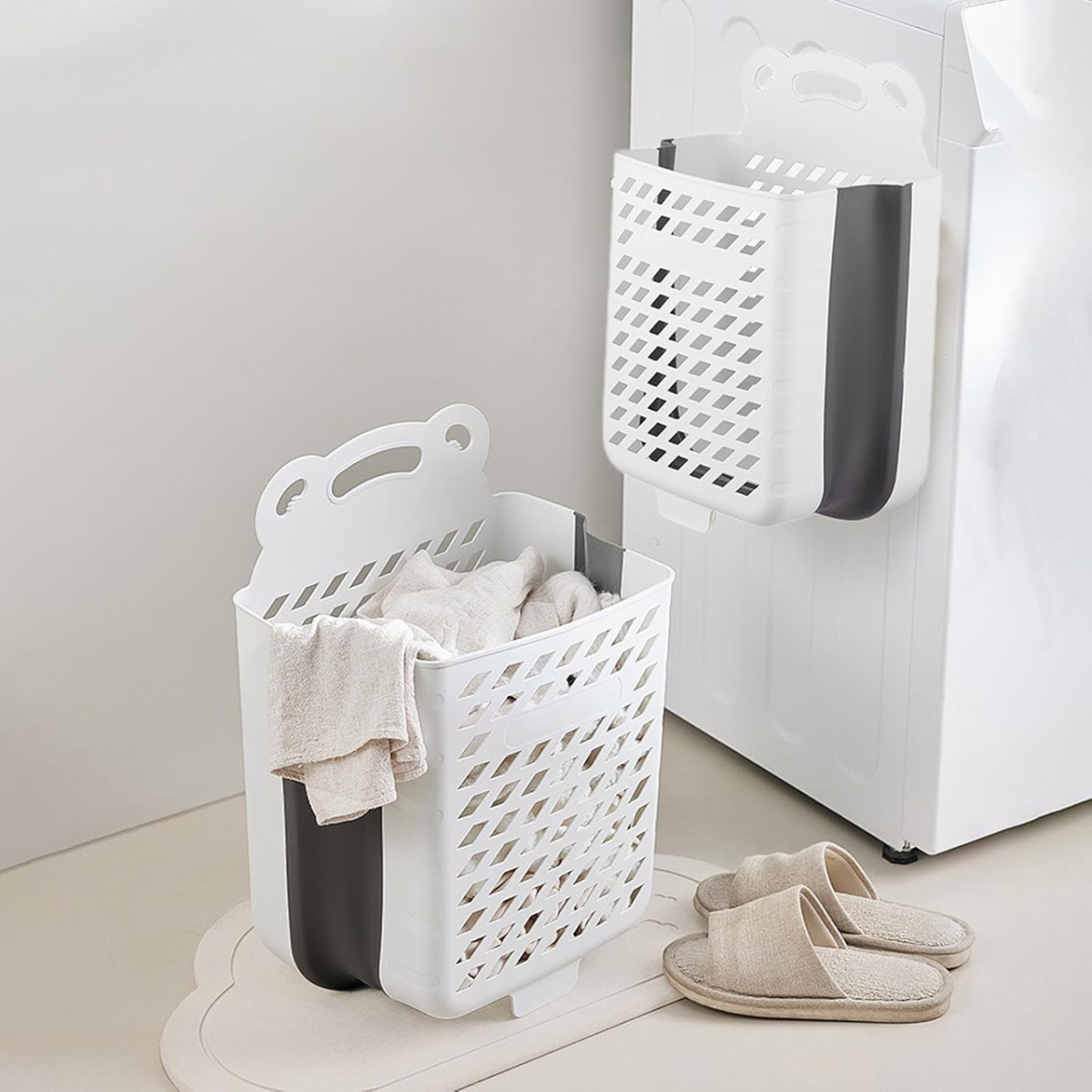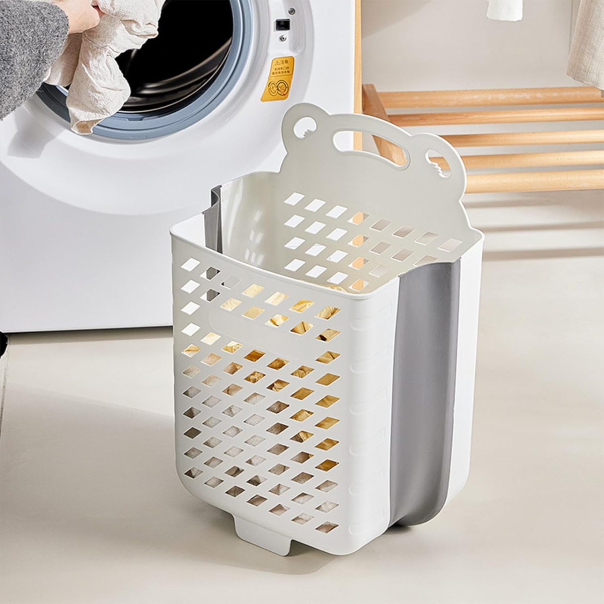 Складний кошик для білизни зі зручною ручкою, пластиковий органайзер для речей, 28×17×38см, білого кольору