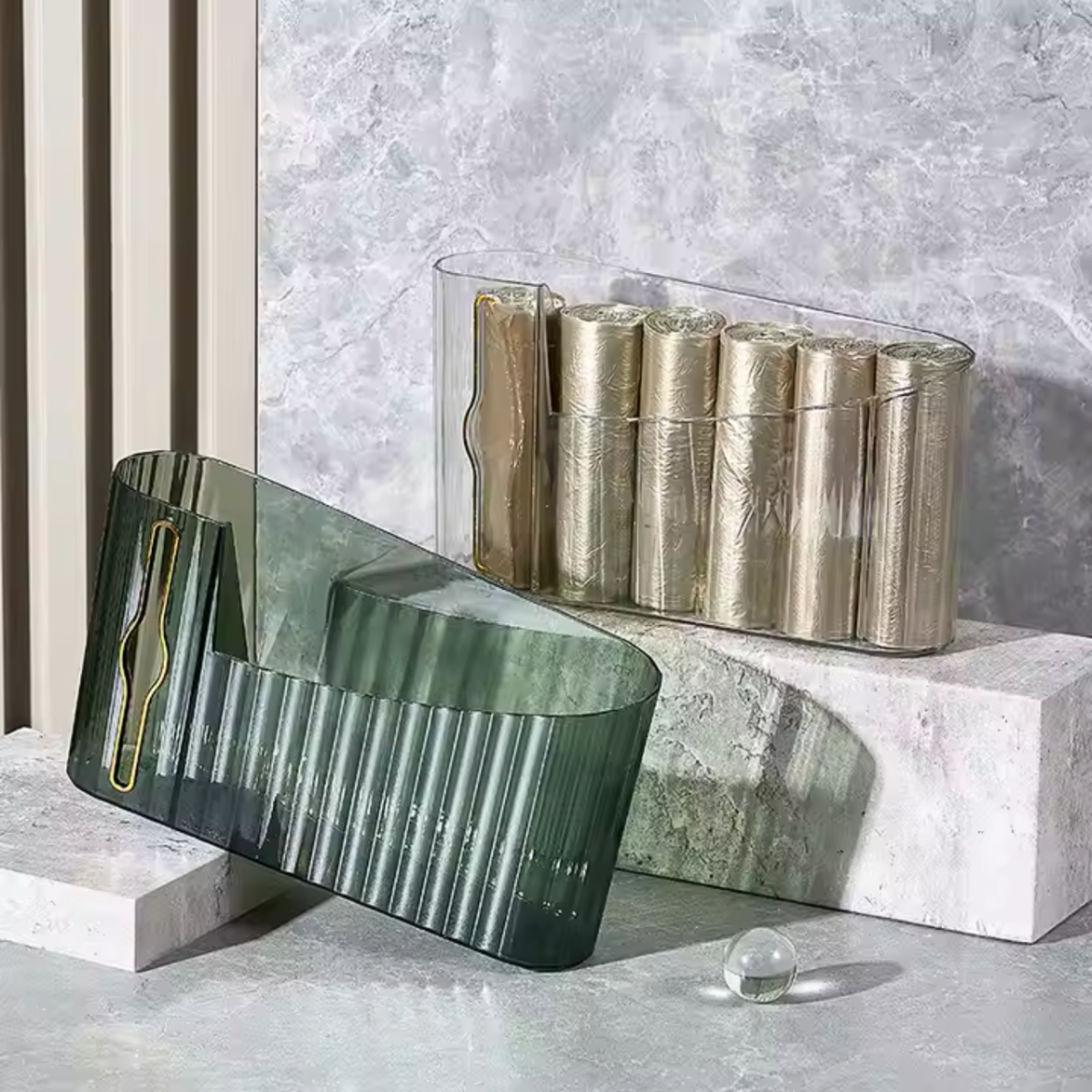 Практичний і компактний органайзер для сміттєвих мішків - це ідеальне рішення для зберігання і зручного використання пакетів. Виготовлений із високоякісного матеріалу ПЕТ, цей диспенсер забезпечує довговічність, зручність і стильний зовнішній вигляд. Компактний дизайн дає змогу економити місце, а розміри 23.5×6×13.2см забезпечують місткість до 6 рулонів пакетів. Тримач оснащений зручним отвором для легкого витягування і відриву пакетів, а прозоре віконце допомагає швидко визначити кількість рулонів, що залишилися. Настінне кріплення легко встановлюється без свердління за допомогою липкої стрічки, що входить до комплекту. Універсальність застосування дає змогу використовувати диспенсер на кухні, у ванній, коморі або офісі. Диспенсер для сміттєвих пакетів - це не тільки зручність, а й стильне рішення для організації будинку. Він допомагає зберігати порядок, забезпечує легкий доступ до пакетів та ідеально підходить для сучасних інтер“єрів. Характеристики: Матеріал: ПЕТ Розміри: 23.5×6×13.2 см Колір: зелений Місткість: до 6 рулонів сміттєвих пакетів
