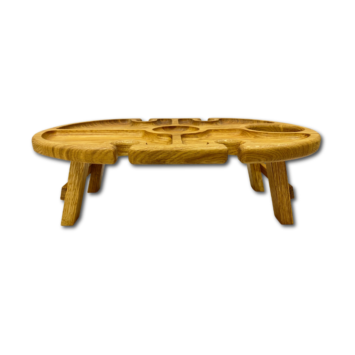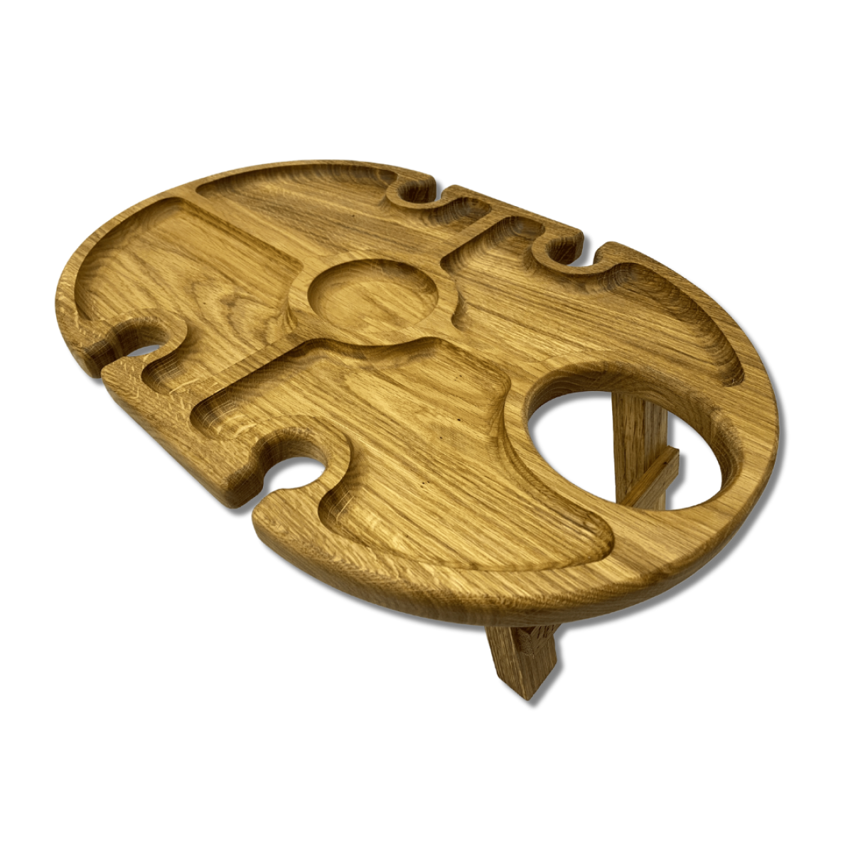 Винний столик з черешні, піднос складний овальний піднос 47×37см, на 4 келихи з отвором для пляшки