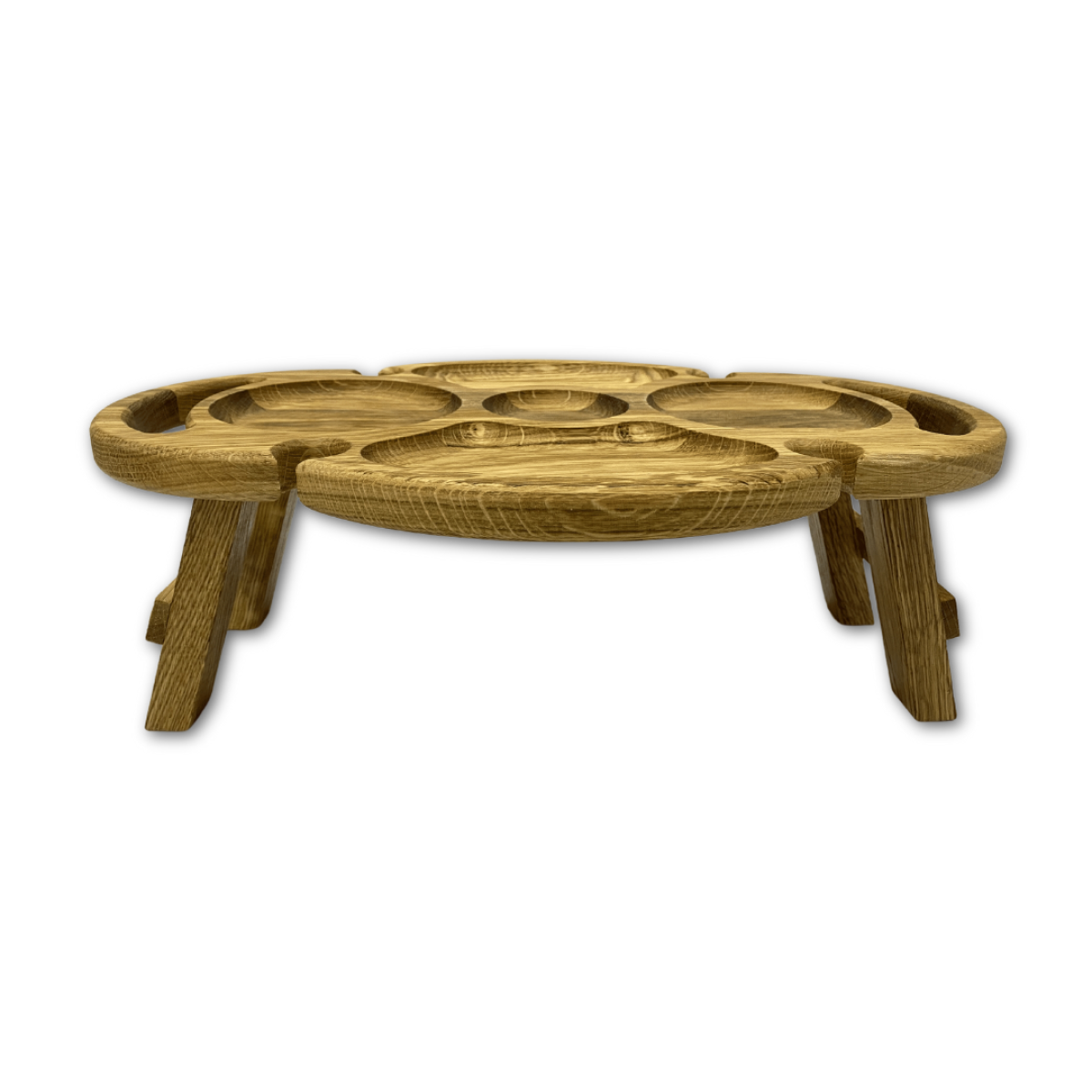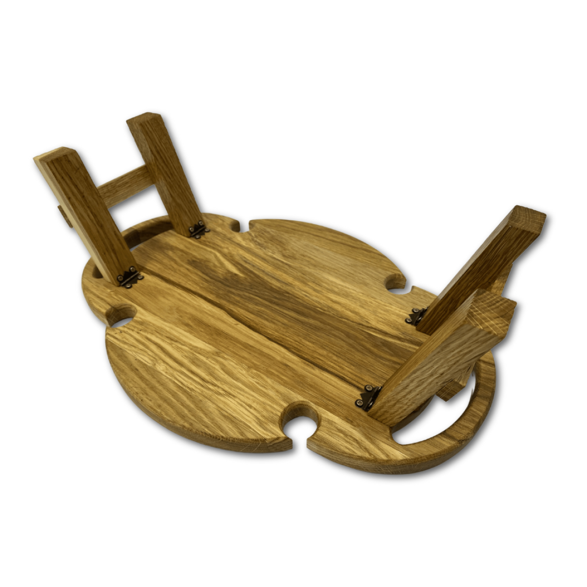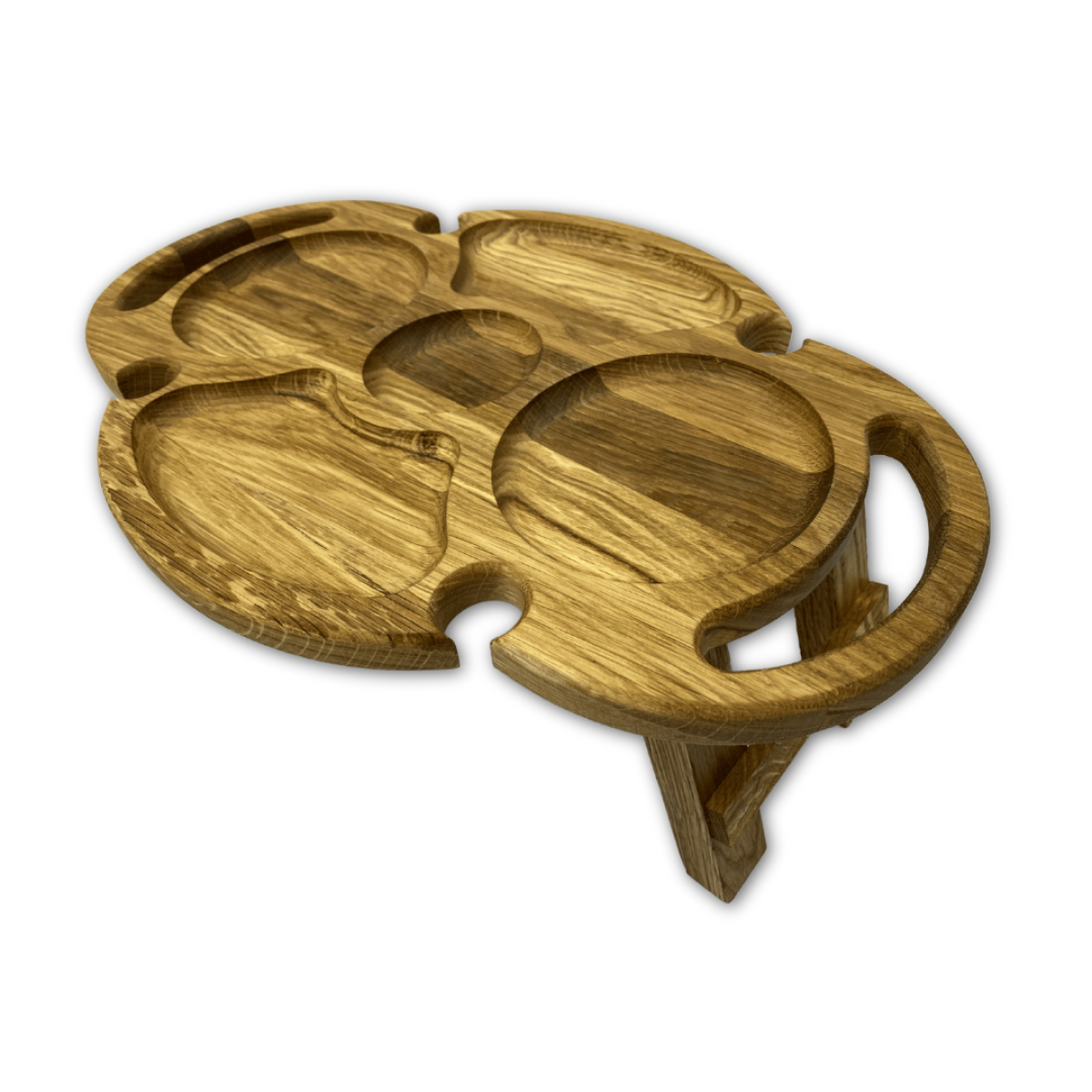 Винний столик з ясена, піднос складний овальний піднос 44×30см з ніжками і тримачами для 4 келихів