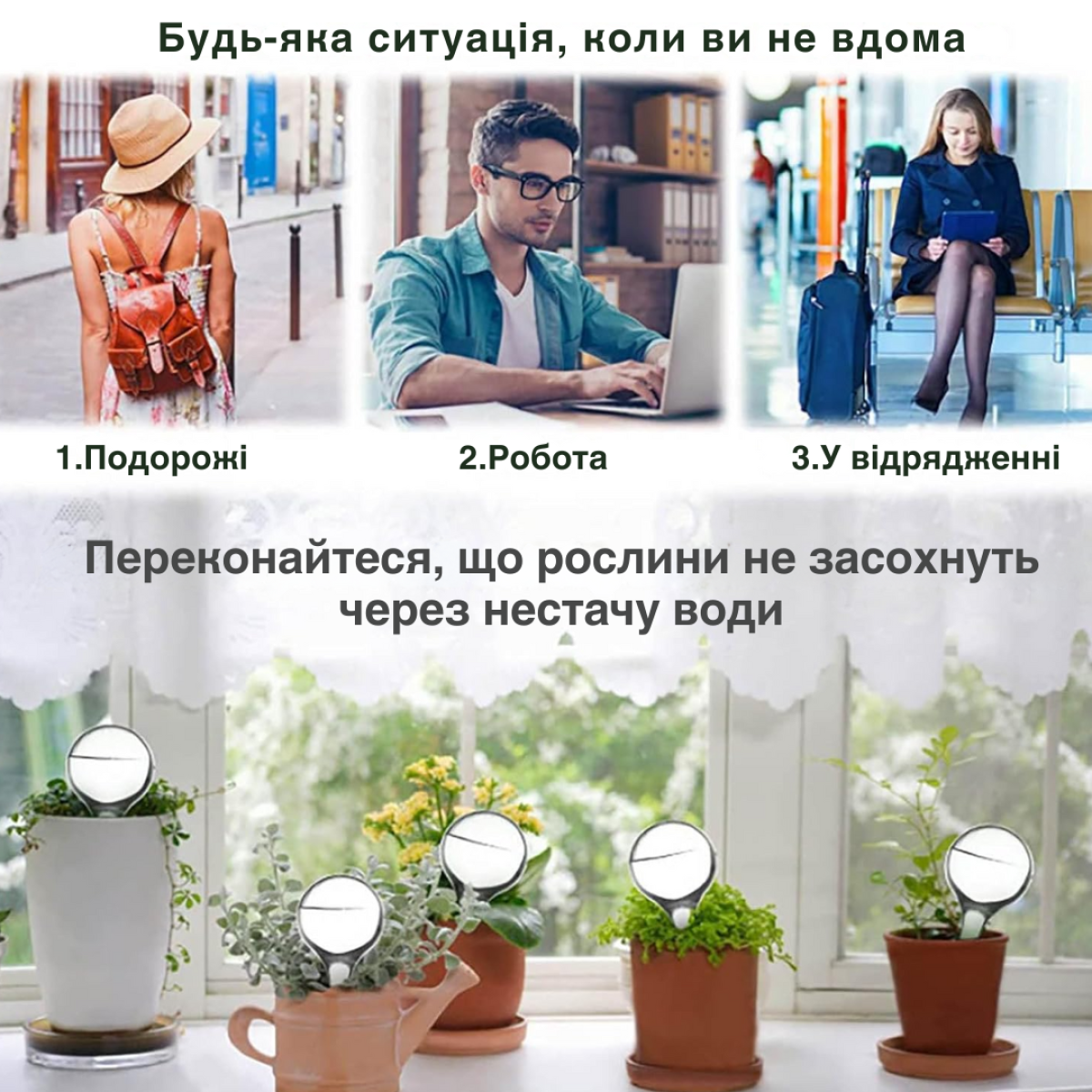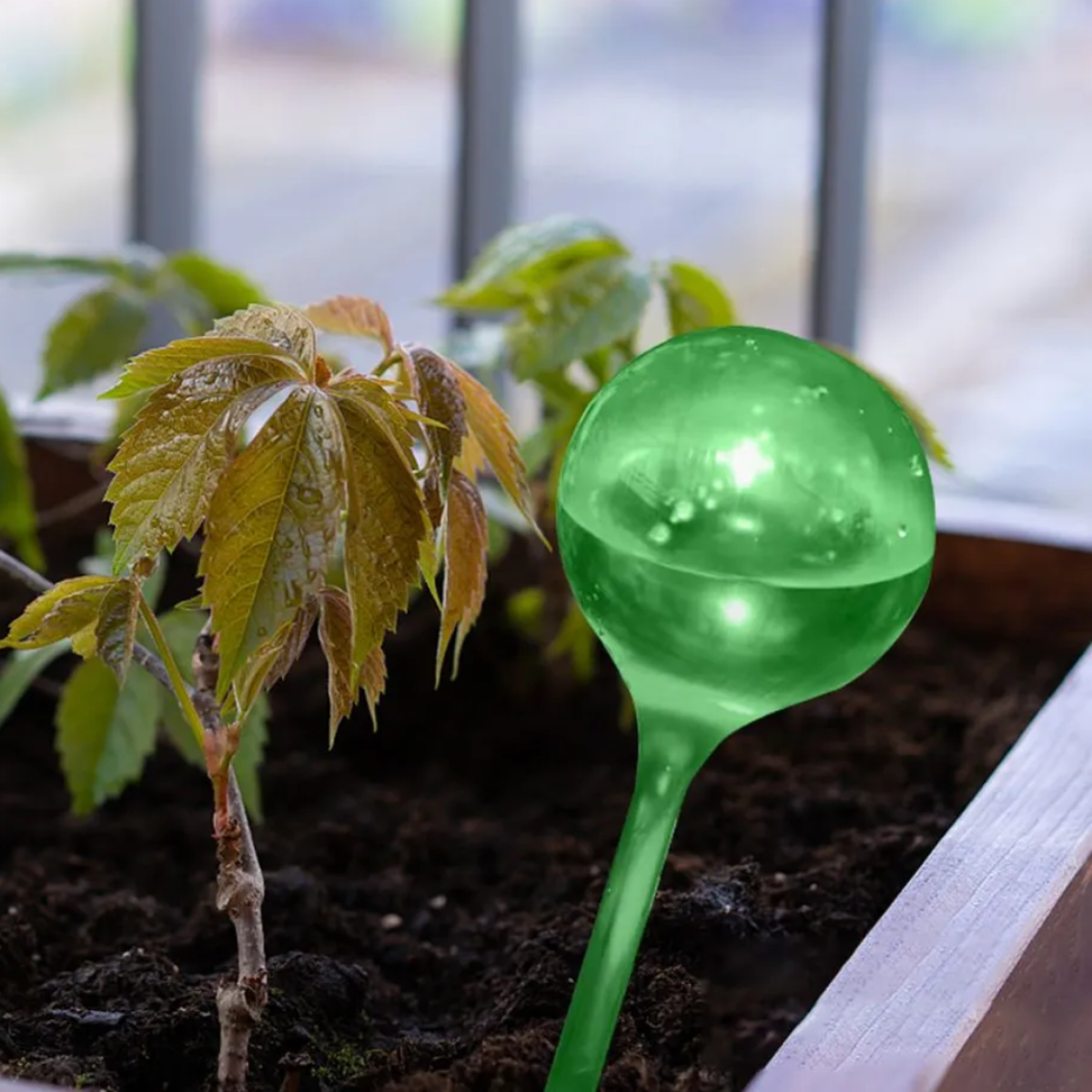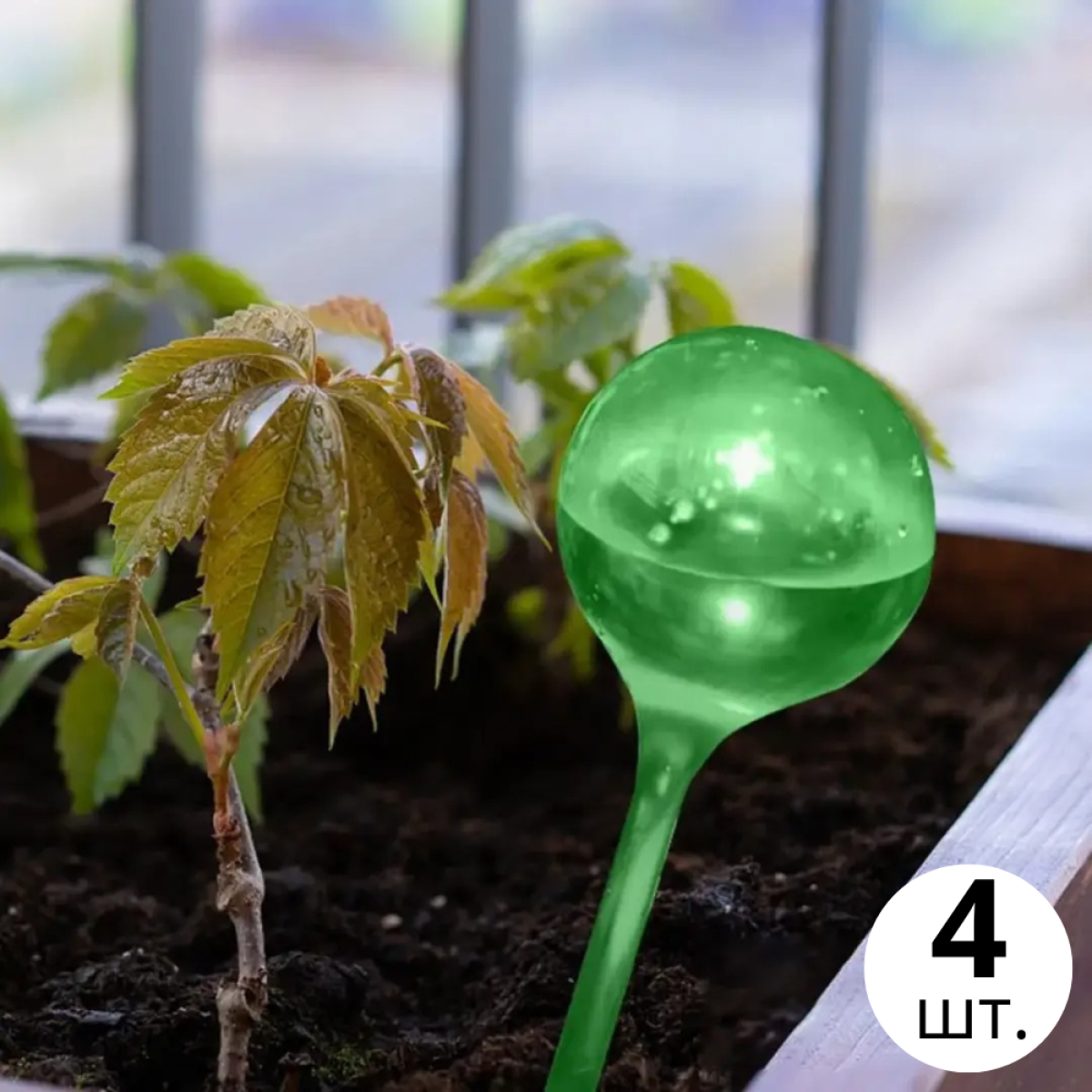 Колба для автоматичного поливу | Вазон у вигляді кулі для саду, 4шт, крапельний полив для рослин, 5×13см зелений