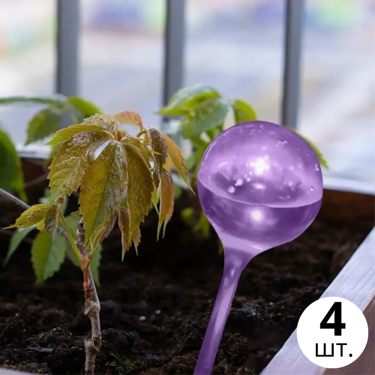 Колба для автоматичного поливу | Вазон у вигляді кулі для саду, 4шт, крапельний полив для рослин, 5×13см фіолетовий
