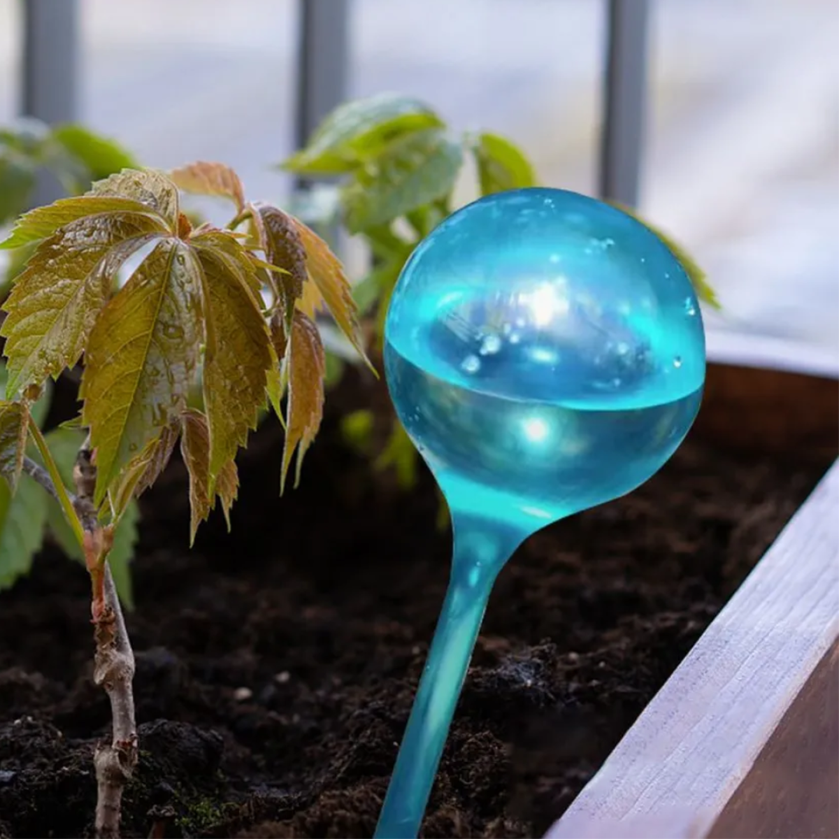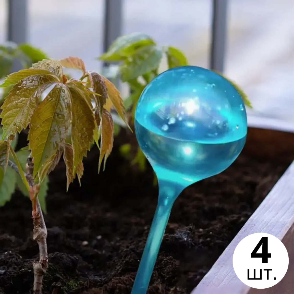 Колба для автоматичного поливу | Вазон у вигляді кулі для саду, 4шт, крапельний полив для рослин, 5×13см синій