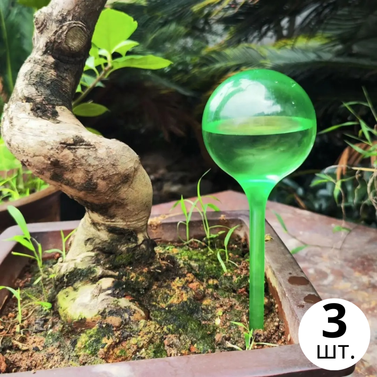 Колба для автоматичного поливу | Вазон у вигляді кулі для саду, 3шт, крапельний автополив, 8×25см, зелений